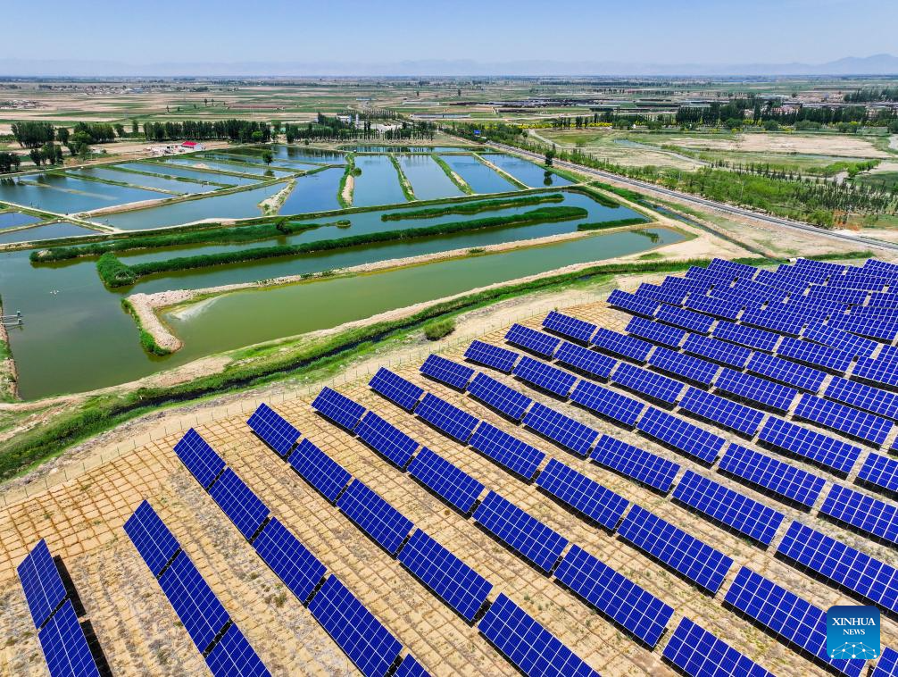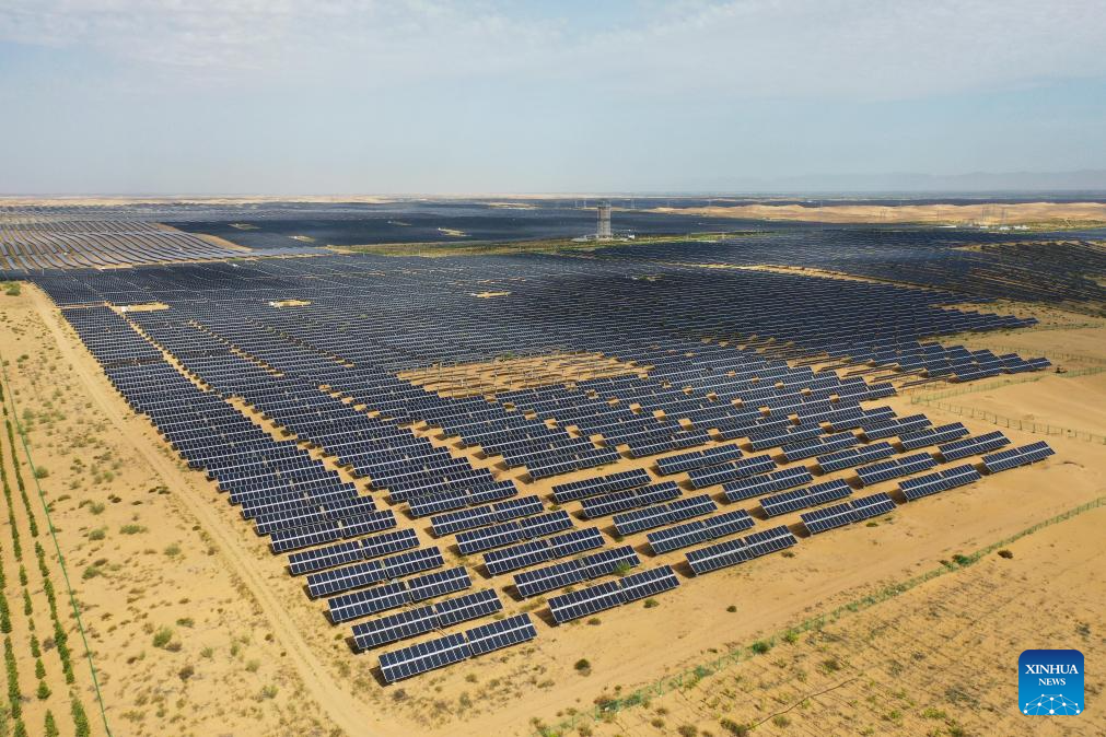 An aerial drone photo taken on June 7, 2025 shows a photovoltaic project in Kubuqi Desert in north China's Inner Mongolia Autonomous Region. In recent years, Inner Mongolia has made all-out efforts to tackle the ecological challenges in the areas along the Yellow River, and has treated land covering a total of 14.89 million mu (about 992,667 hectares).
