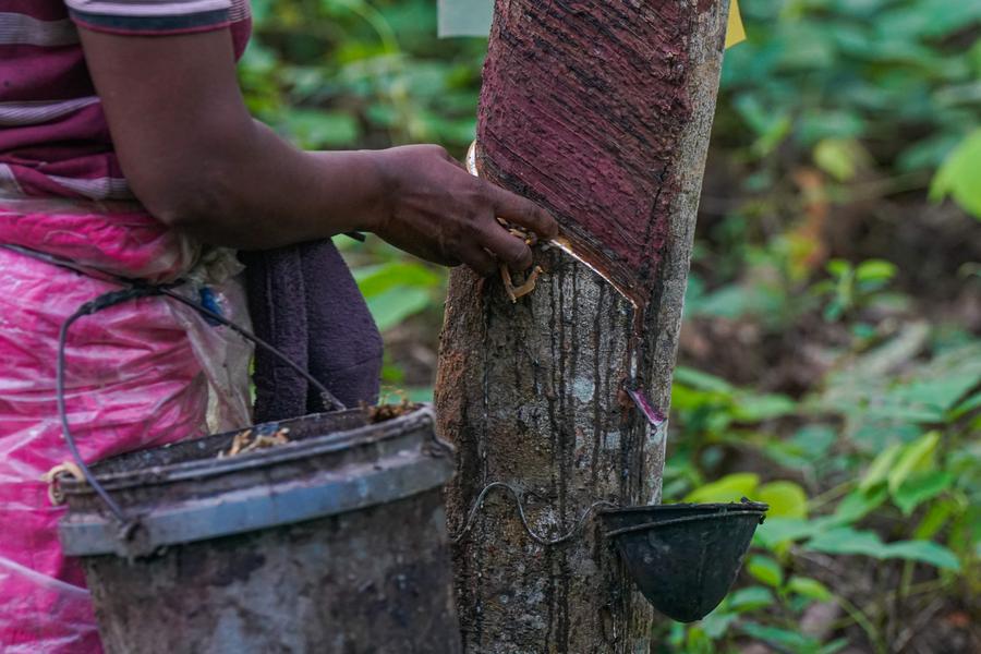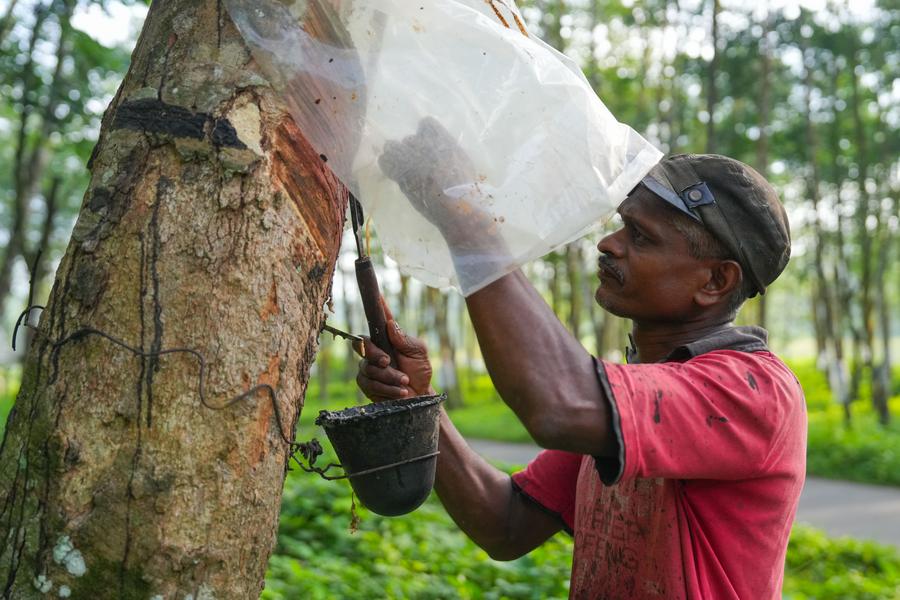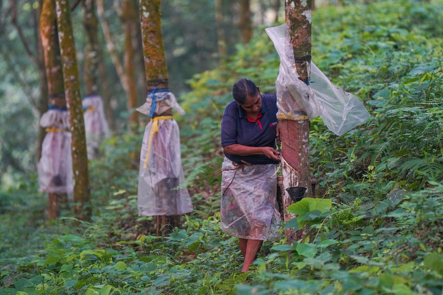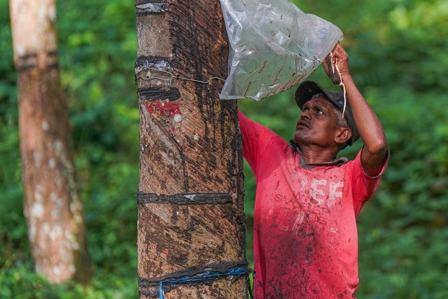 A laborer cuts a rubber tree to collect rubber latex at a rubber plantation in Eheliyagoda, Sri Lanka, June 9, 2025. (Photo by Thilina Kaluthotage/Xinhua)A laborer cuts a rubber tree to collect rubber latex at a rubber plantation in Eheliyagoda, Sri Lanka, June 9, 2025. (Photo by Thilina Kaluthotage/Xinhua)A laborer cuts a rubber tree to collect rubber latex at a rubber plantation in Eheliyagoda, Sri Lanka, June 9, 2025. (Photo by Thilina Kaluthotage/Xinhua)A laborer works at a rubber plantation in Eheliyagoda, Sri Lanka, June 9, 2025. (Photo by Thilina Kaluthotage/Xinhua)Rubber latex is collected in bowls at a rubber plantation in Eheliyagoda, Sri Lanka, June 9, 2025. (Photo by Thilina Kaluthotage/Xinhua)■