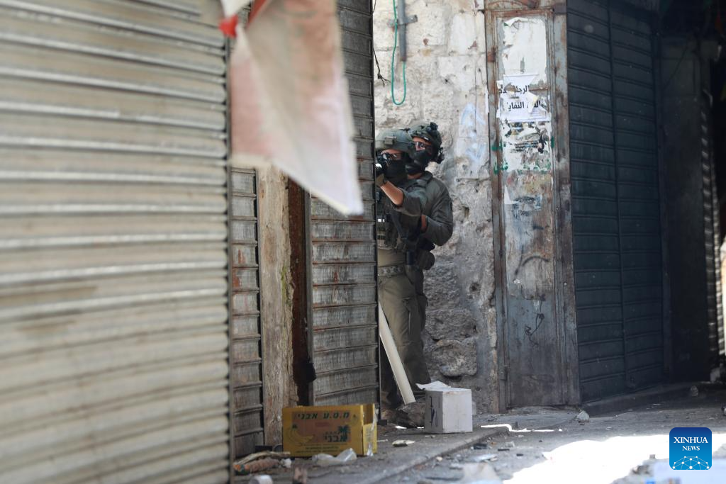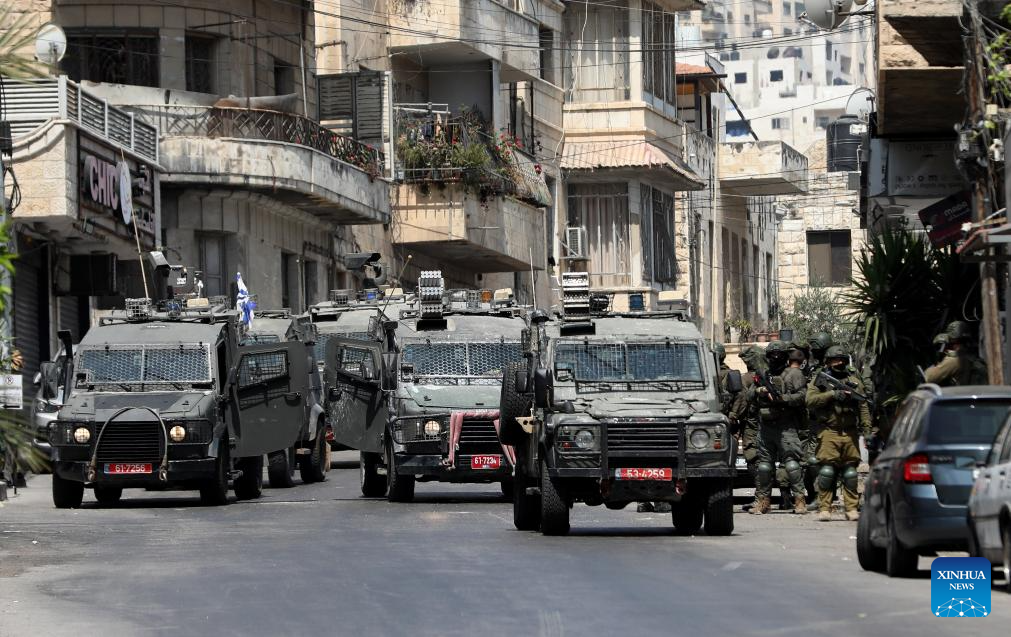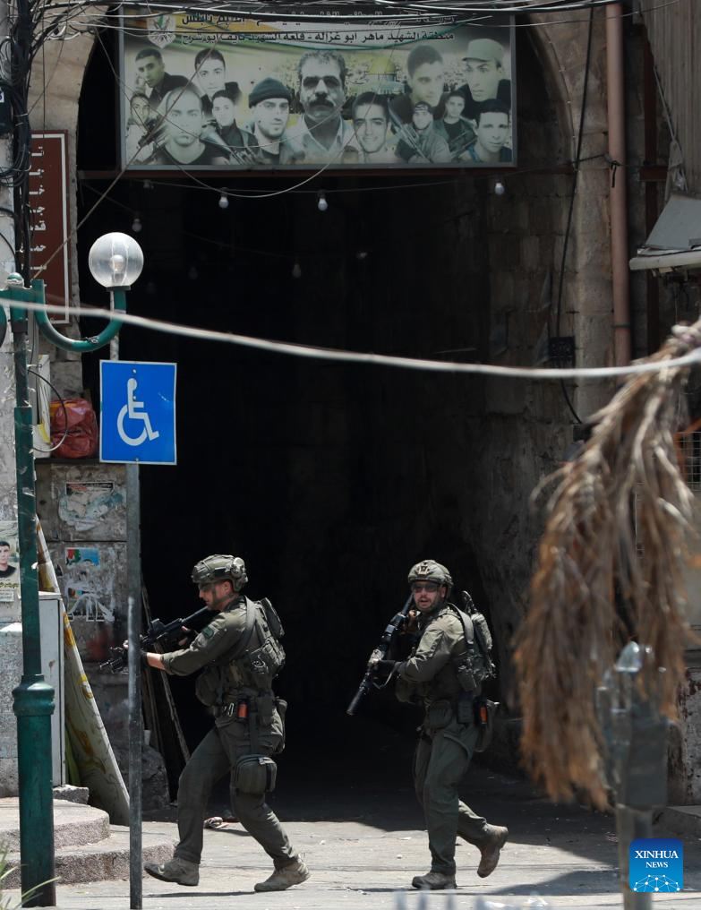 Members of Israeli forces carry out an operation in the West Bank city of Nablus, on June 10, 2025. A Palestinian man was killed and another injured on Tuesday during an Israeli army raid in the Old City of Nablus in the northern West Bank, according to a Palestinian official. (Photo by Ayman Nobani/Xinhua)