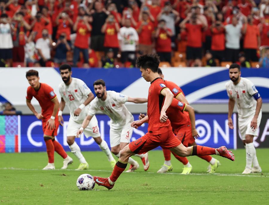CHONGQING, June 10 (Xinhua) -- 18-year-old young forward Wang Yudong scored a late penalty for China as the home team beat Bahrain 1-0 here on Tuesday to finish its FIFA World Cup 2026 qualifying journey.
