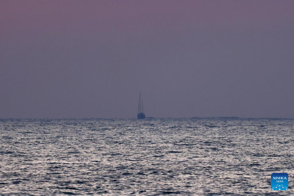 The vessel reportedly carrying humanitarian cargo arrives at the waters near the port of Ashdod, southern Israel, on June 9, 2025. Israel said on Monday it had intercepted a vessel carrying 12 activists attempting to breach its naval blockade of the Gaza Strip and escorted it to the port of Ashdod. (Photo by Jamal Awad/Xinhua)