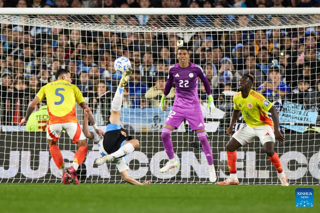 BUENOS AIRES, June 10 (Xinhua) -- Thiago Almada struck late as Argentina salvaged a 1-1 home draw against Colombia in their FIFA World Cup qualifier on Tuesday.