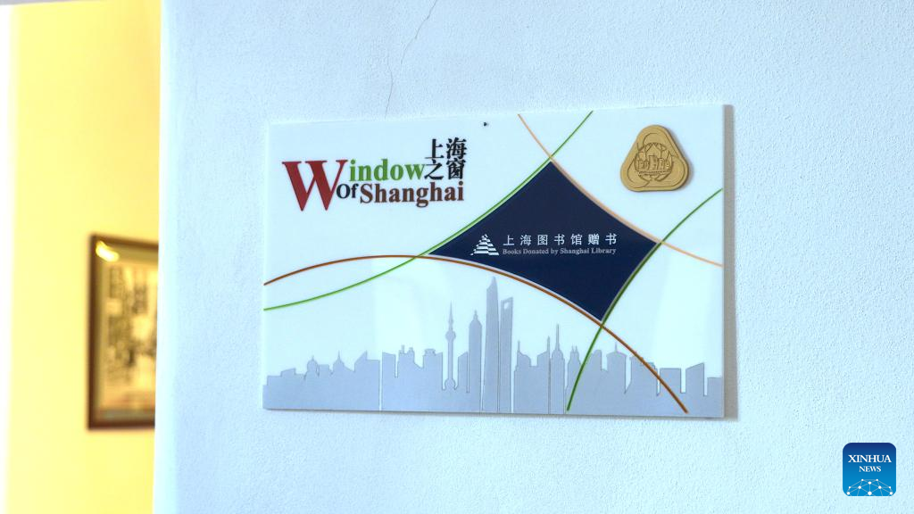 Photo taken on June 5, 2025 shows the Window of Shanghai plate outside the library room at the State Scientific Library in Banska Bystrica, Slovakia. (Photo by Peter Lahky/Xinhua)