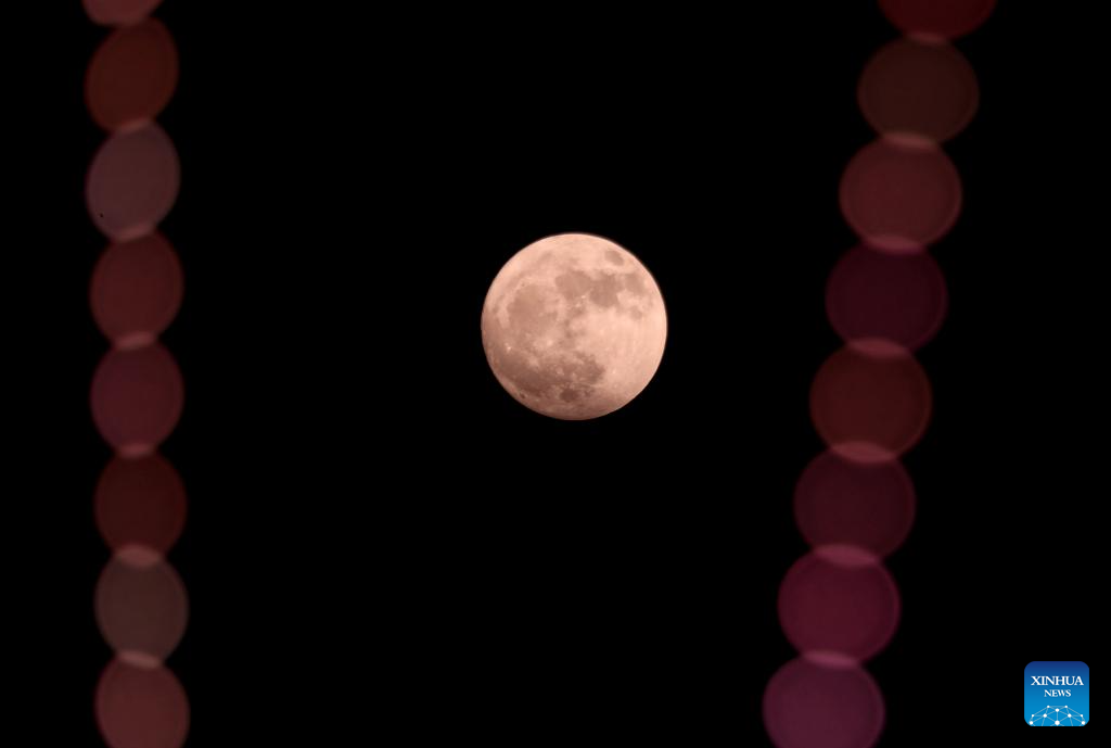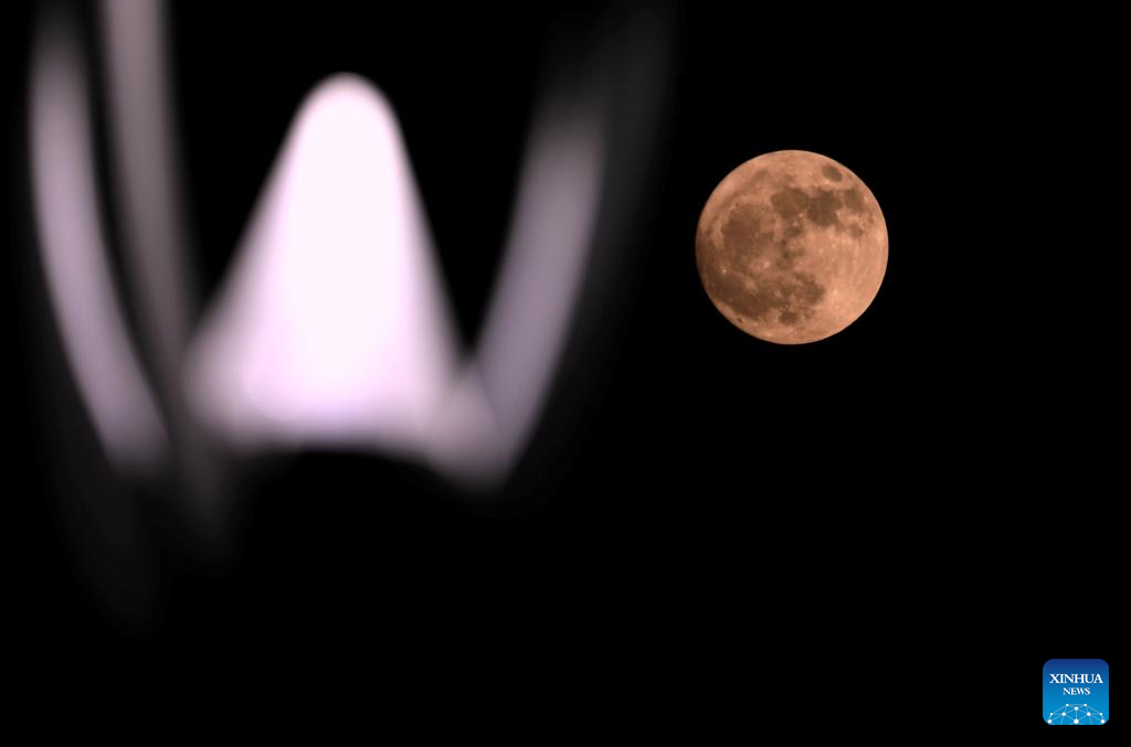 A full moon is seen in the sky of Baghdad, Iraq, June 10, 2025. (Xinhua/Khalil Dawood)