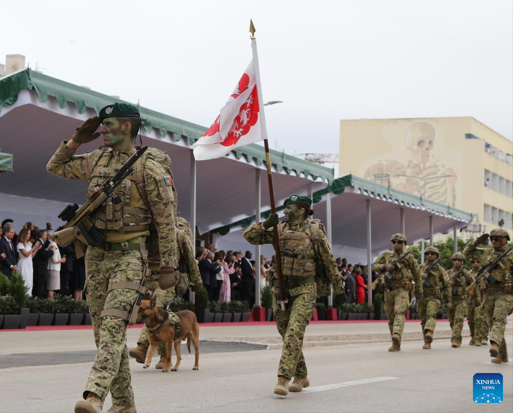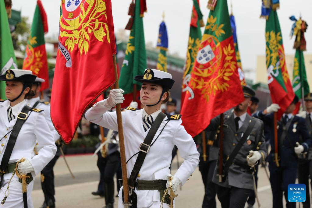 Soldiers take part in a military parade to mark Portugal Day in Lagos, Portugal, on June 10, 2025. (Xinhua/Xun Wei)
