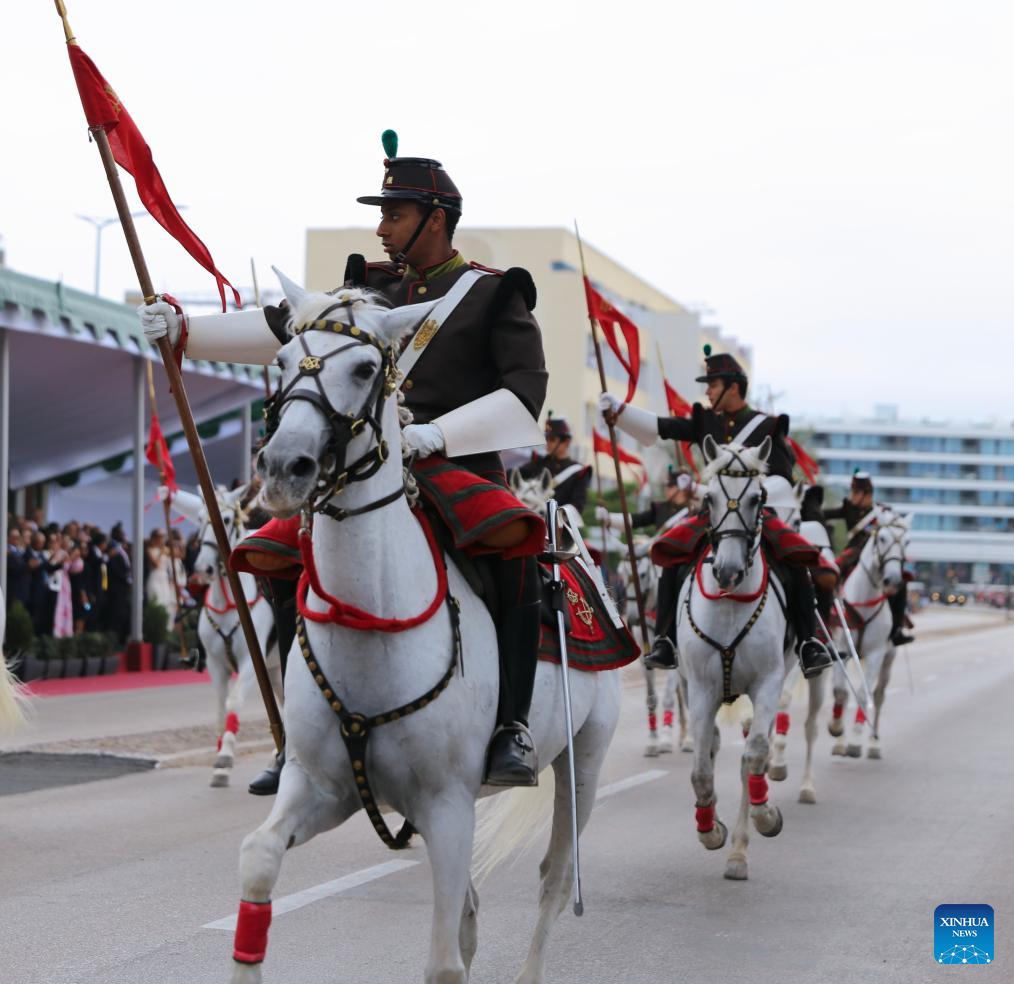 Members of a cavalry squadron take part in a military parade to mark Portugal Day in Lagos, Portugal, on June 10, 2025. (Xinhua/Xun Wei)