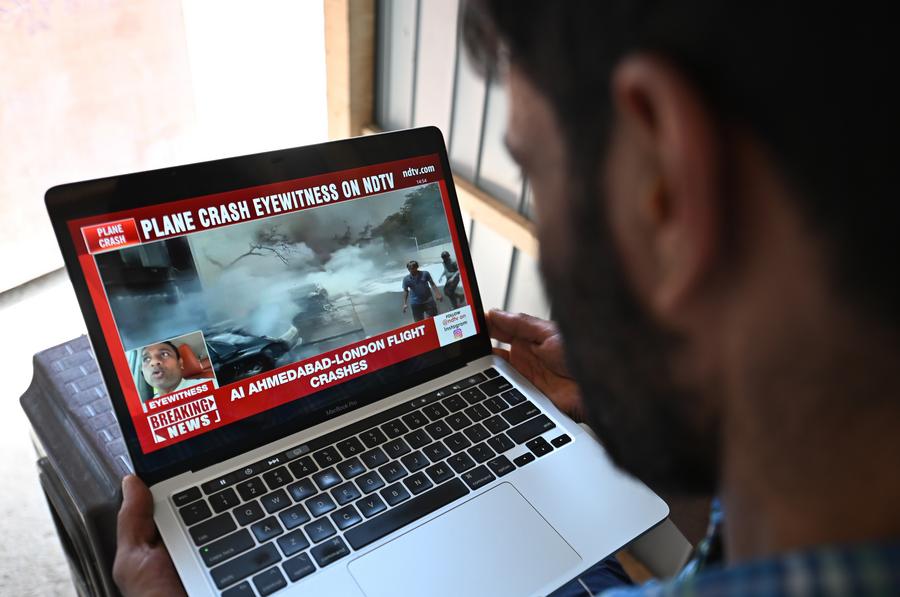 NEW DELHI, June 12 (Xinhua) -- An Air India flight to London crashed Thursday shortly after takeoff from an airport in the western Indian state of Gujarat, officials said.