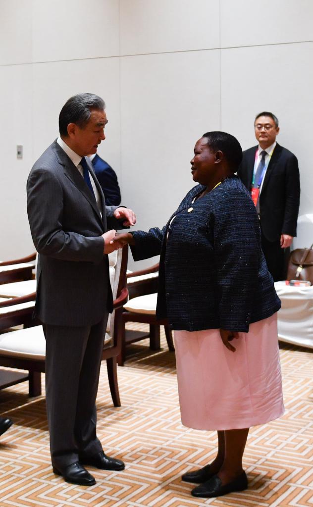 The African dignitaries Wang met with include Ugandan Prime Minister Robinah Nabbanja, Liberian Vice President Jeremiah Kpan Koung, Rwandan Foreign Minister Olivier Nduhungirehe, Somali Foreign Minister Abdisalam Abdi Ali, Mozambican Foreign Minister Maria Manuela dos Santos Lucas, and Togolese Foreign Minister Robert Dussey.