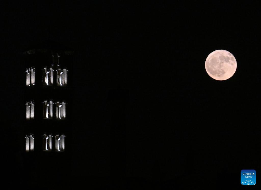 A full moon is seen in the sky over Tehran, Iran, on June 11, 2025. (Xinhua/Shadati)