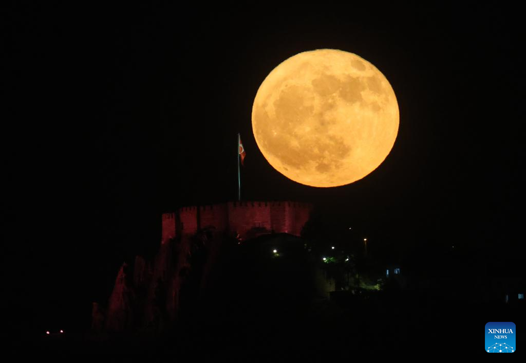 A full moon appears over Ankara Castle in Ankara, Türkiye, on June 11, 2025. (Mustafa Kaya/Handout via Xinhua)