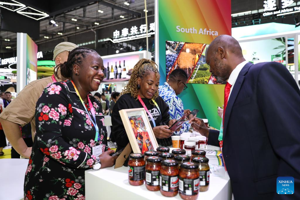 People visit the booth of South Africa at Changsha International Convention and Exhibition Center in Changsha, central China's Hunan Province, June 12, 2025. The fourth China-Africa Economic and Trade Expo opened on Thursday in the central Chinese city of Changsha.