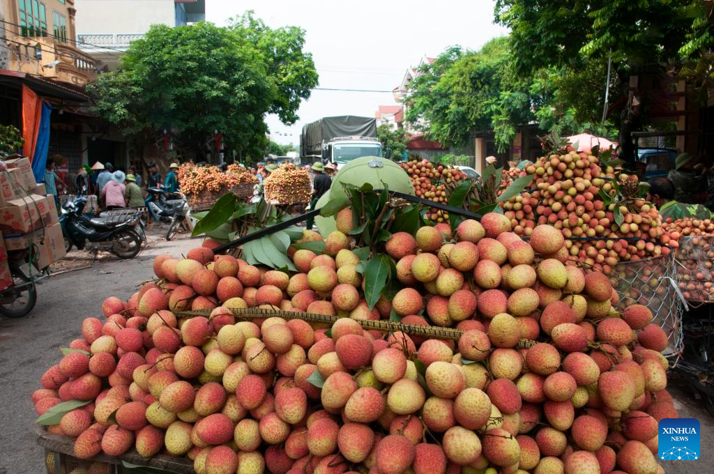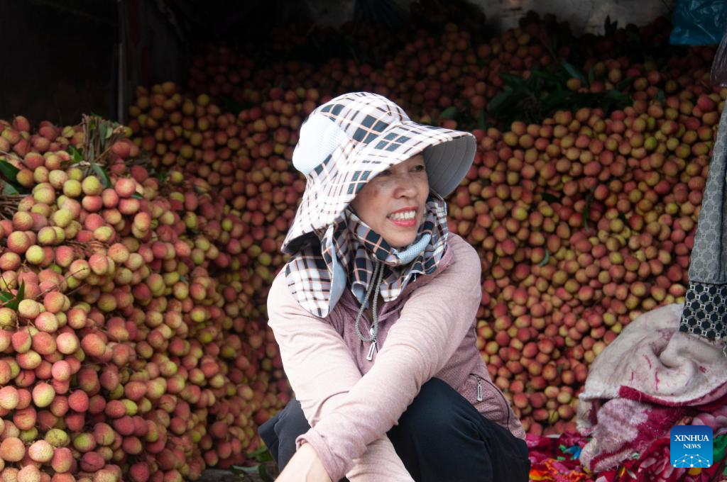 This photo taken on June 12, 2025 shows lychees in Bac Giang province, Vietnam. Lychees are now in season in Vietnam's Bac Giang Province, with the season typically lasting 10 to 15 days from early June. (Photo by Dang Hong Dung/Xinhua)