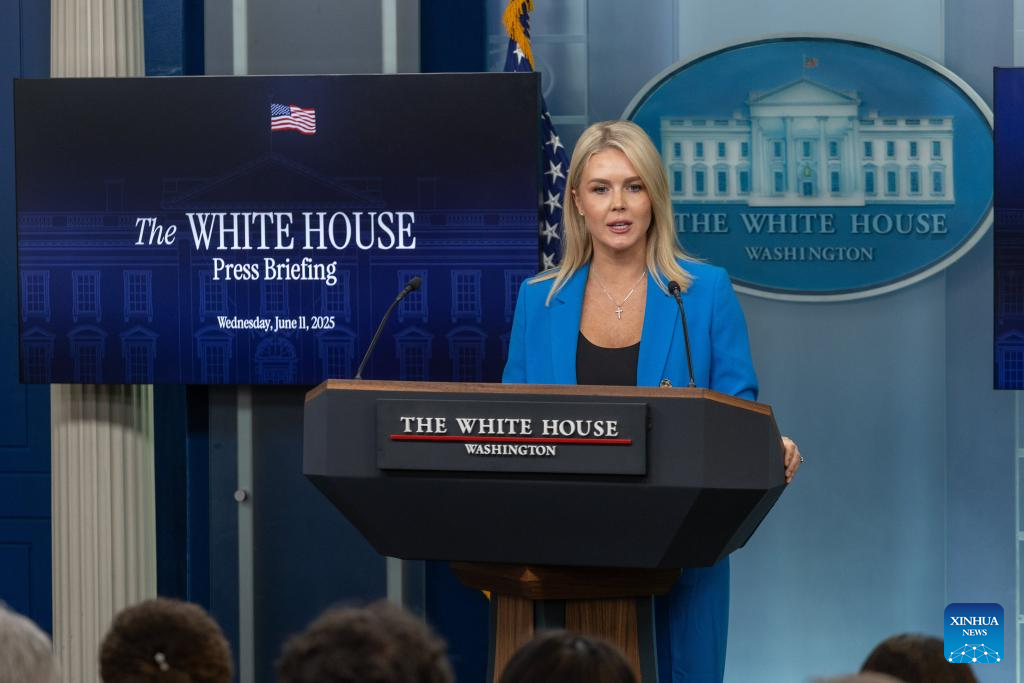 White House Press Secretary Karoline Leavitt speaks during a press briefing at the White House in Washington, D.C., the United States, on June 11, 2025. (Xinhua/Hu Yousong)