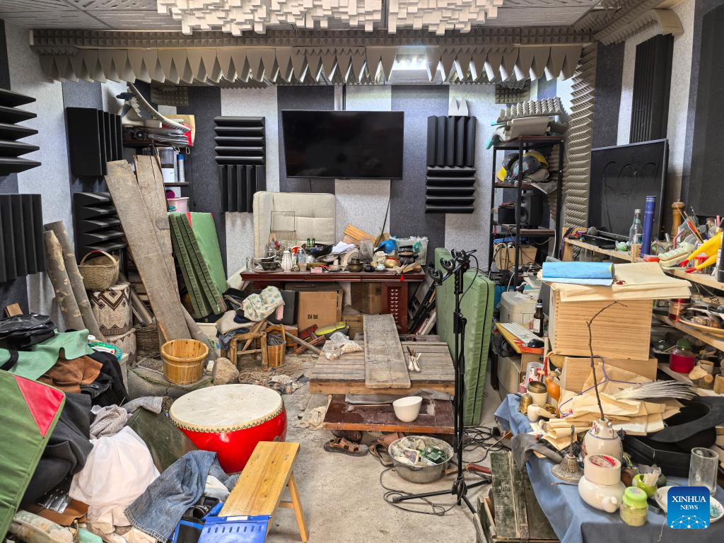 This photo taken on June 4, 2025 shows the prop room of foley artist Han Ruida's studio in Qingdao, east China's Shandong Province. In 2017, Qingdao earned the title of UNESCO City of Film, becoming the first city in China to receive the honor. Since then, with major productions like "The Wandering Earth" filmed there, China's domestic film industry has taken significant strides toward industrialization.
