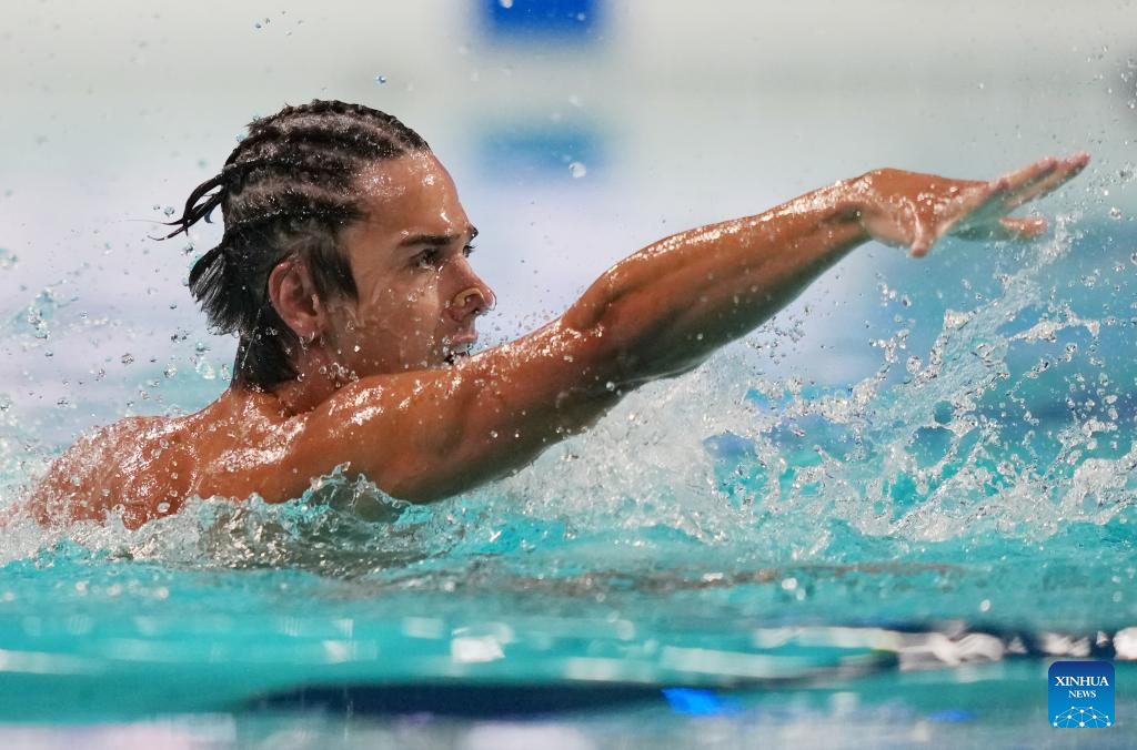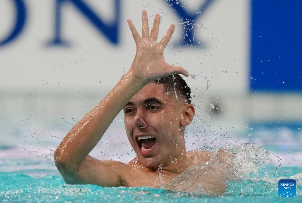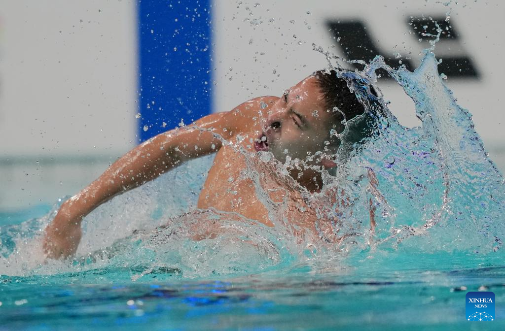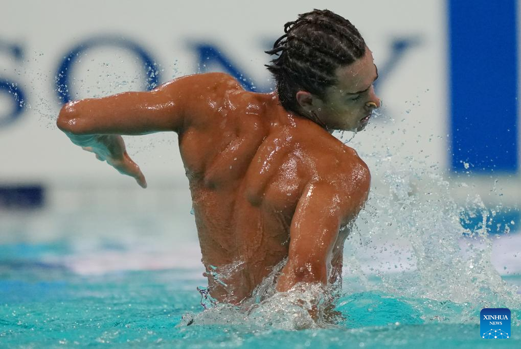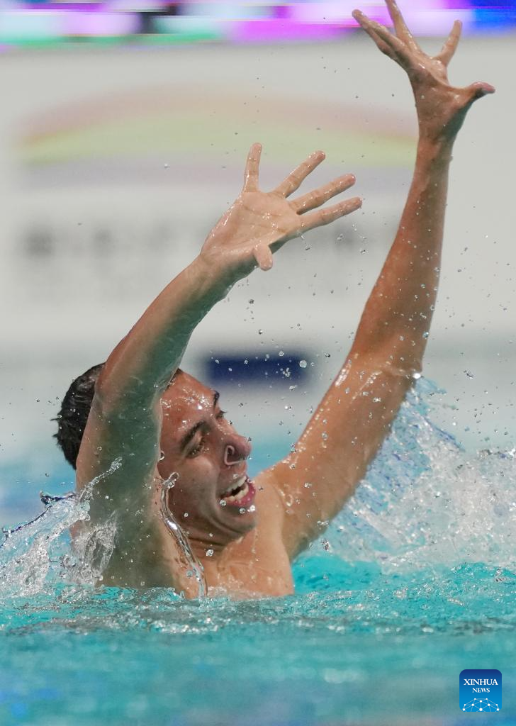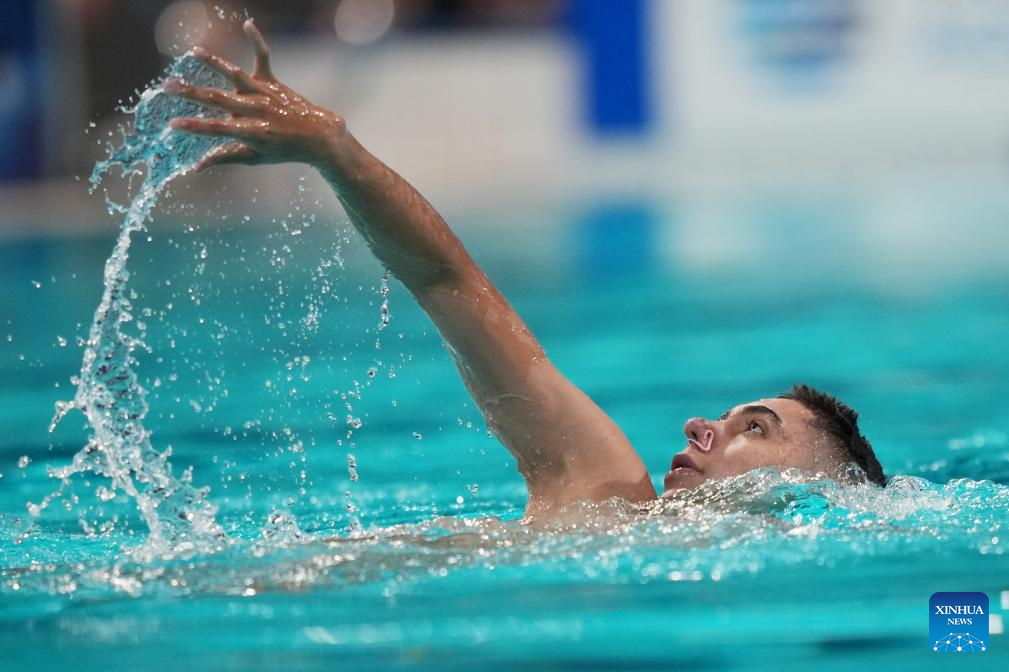 Jordi Caceres Iglesiasa of Spain performs during the men solo technical event at the World Aquatics Artistic Swimming World Cup 2025-Super Final in Xi'an, northwest China's Shaanxi Province, June 13, 2025. (Xinhua/Li Yibo)