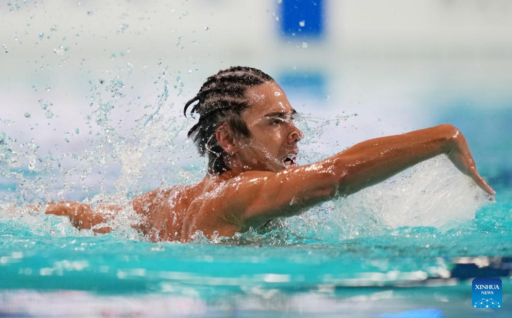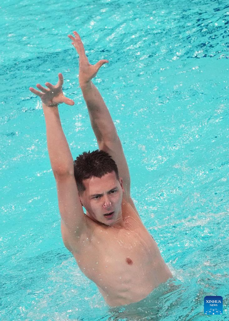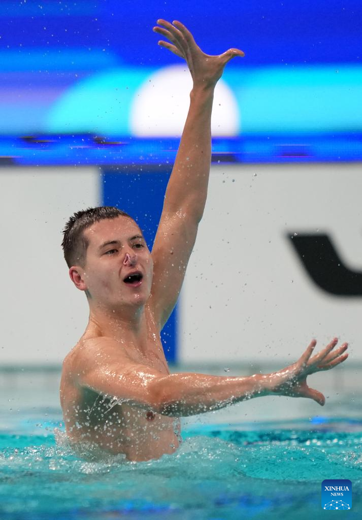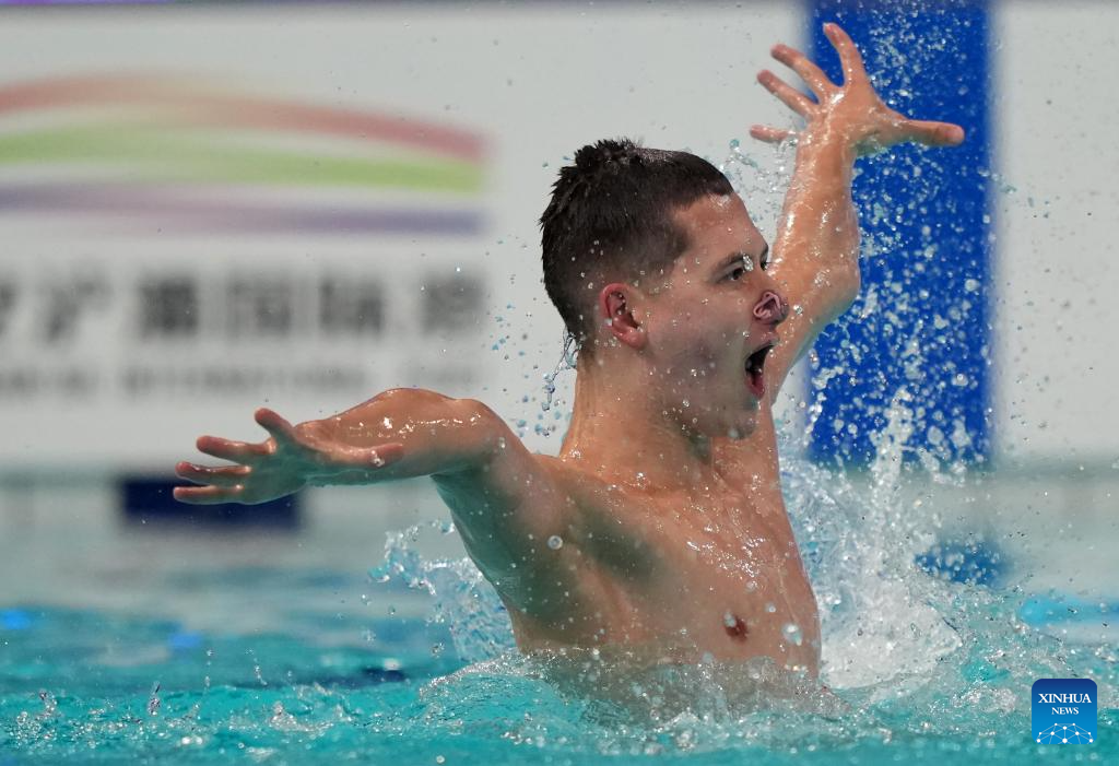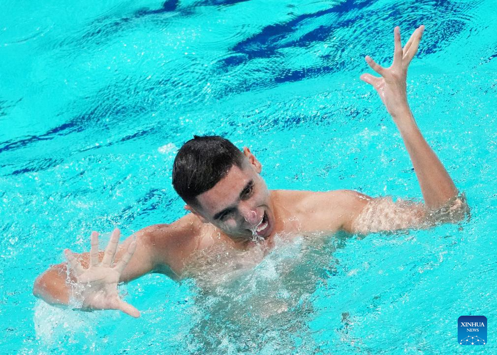 Jordi Caceres Iglesias Of Spain performs during the men solo technical event at the World Aquatics Artistic Swimming World Cup 2025-Super Final in Xi'an, northwest China's Shaanxi Province, June 13, 2025. (Xinhua/Li Yibo)