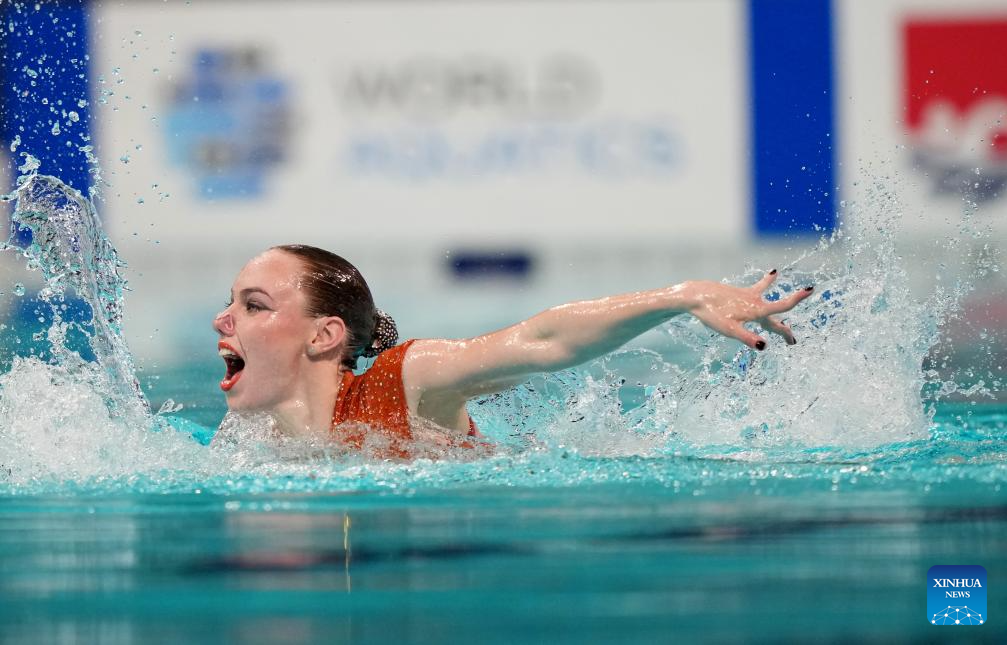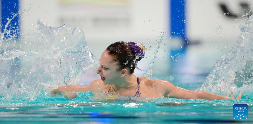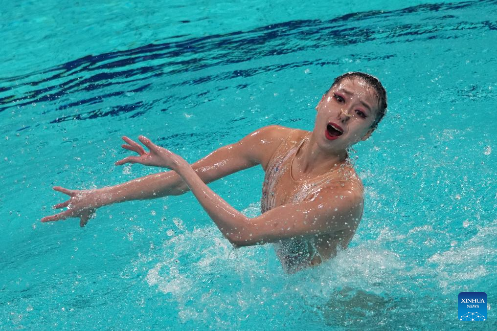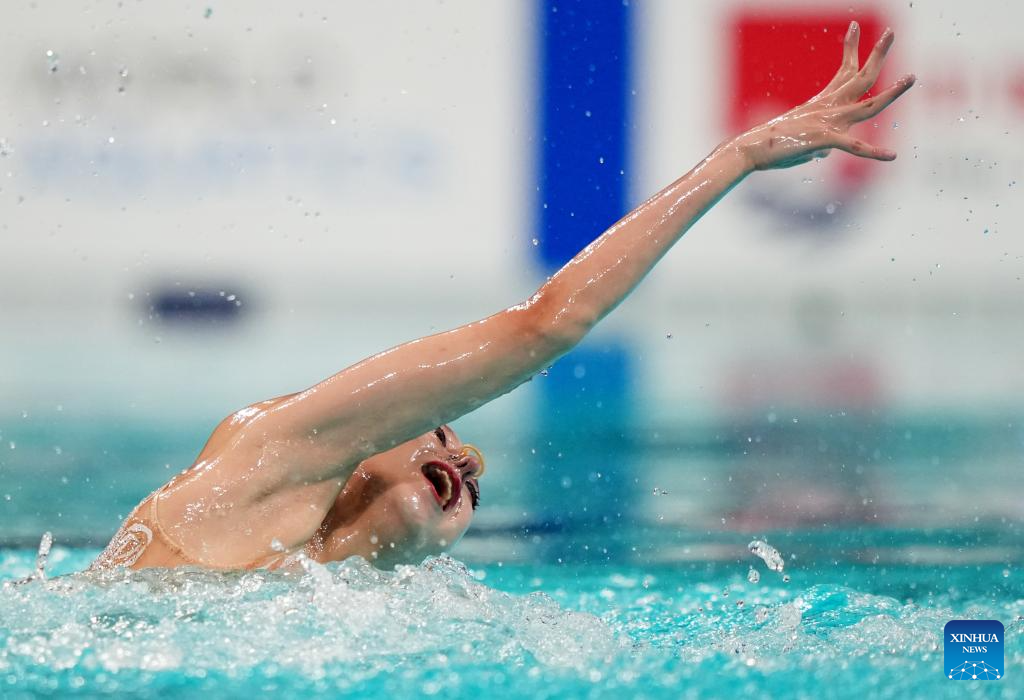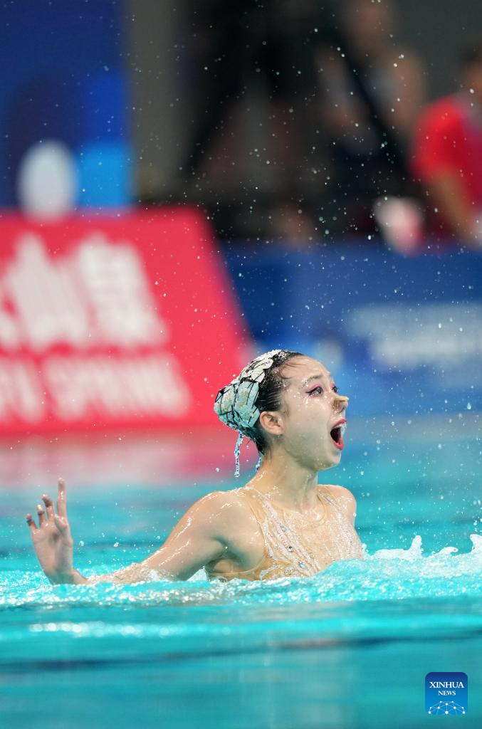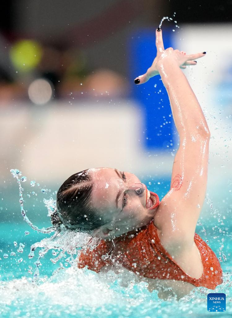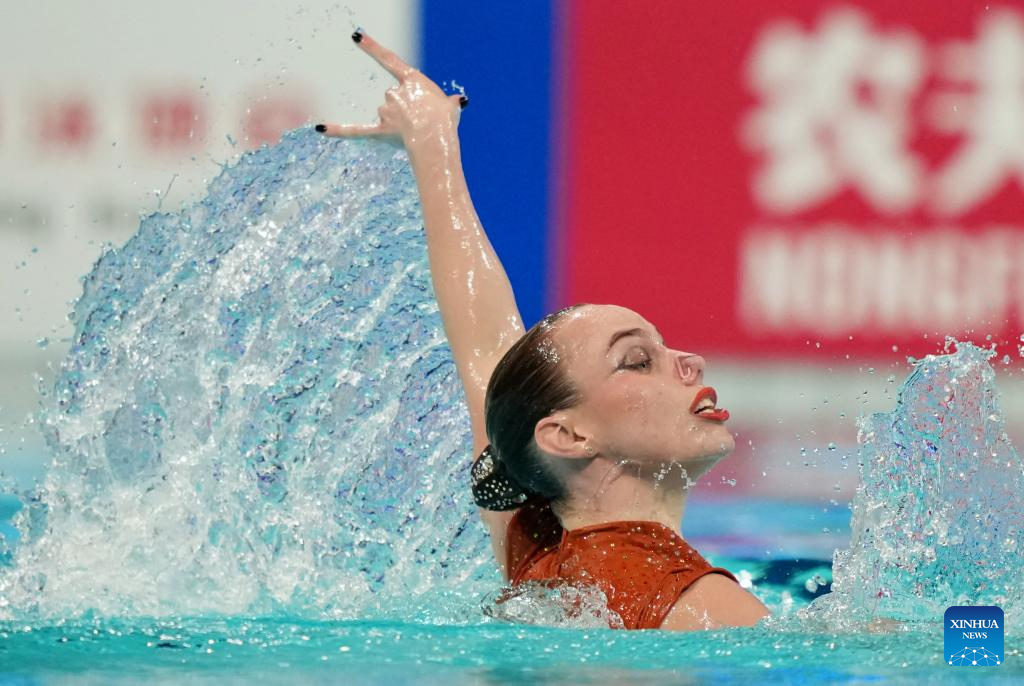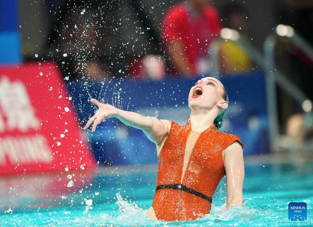 Vasilina Khandoshka competes during the women solo technical event at the World Aquatics Artistic Swimming World Cup 2025-Super Final in Xi'an, northwest China's Shaanxi Province, June 13, 2025. (Xinhua/Li Yibo)