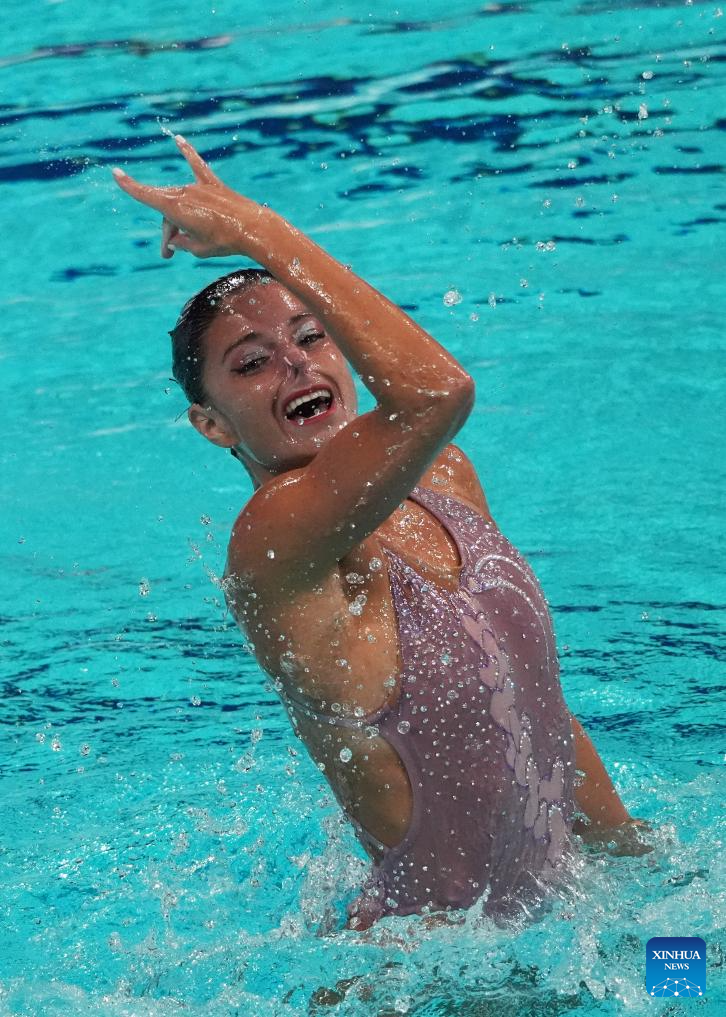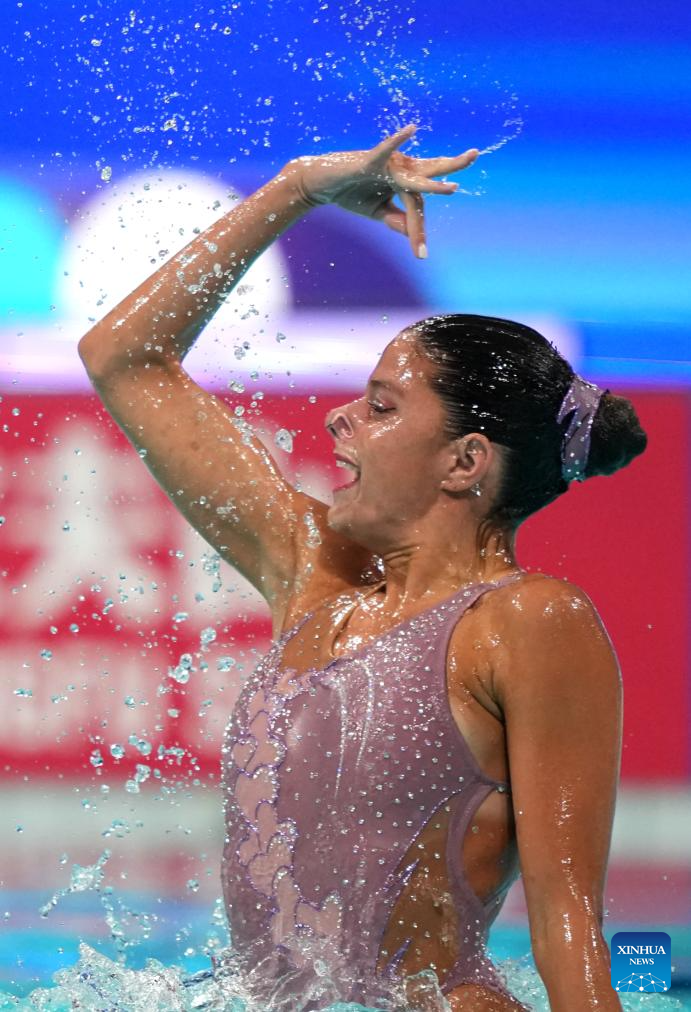 Iris Tio Casas of Spain competes during the women solo technical event at the World Aquatics Artistic Swimming World Cup 2025-Super Final in Xi'an, northwest China's Shaanxi Province, June 13, 2025. (Xinhua/Li Yibo)