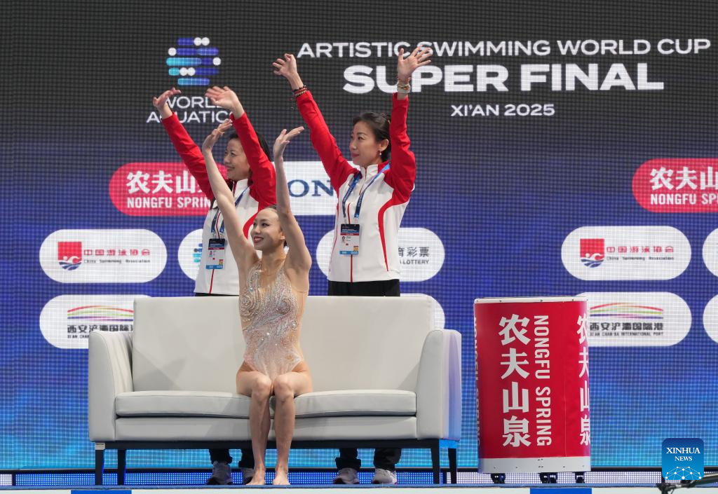 Xu Huiyan of China competes during the women solo technical event at the World Aquatics Artistic Swimming World Cup 2025-Super Final in Xi'an, northwest China's Shaanxi Province, June 13, 2025. (Xinhua/Zou Jingyi)