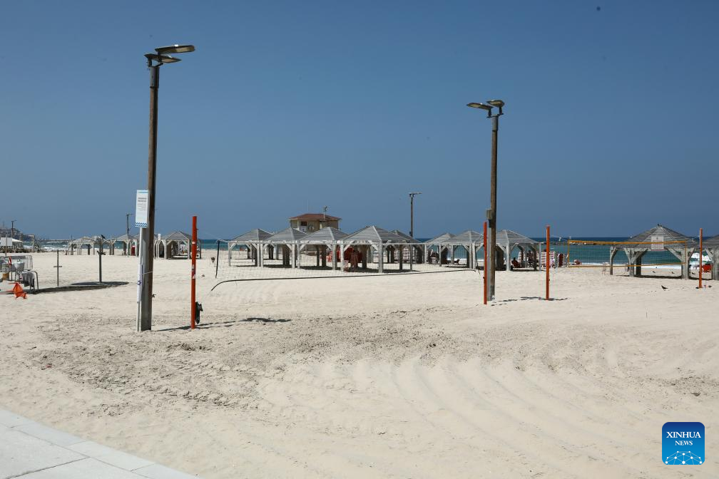 This photo taken on June 13, 2025 shows an empty beach in Tel Aviv, Israel. The Israel Defense Forces (IDF) confirmed early Friday in a statement that it had launched a "preemptive, precise, combined" attack on dozens of military targets, including nuclear targets in different areas of Iran, adding, "Iran is closer than ever to obtaining a nuclear weapon."