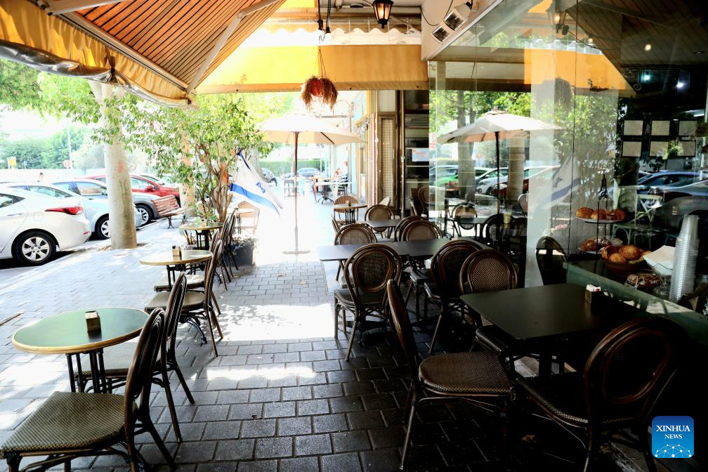 This photo taken on June 13, 2025 shows an empty cafe in Tel Aviv, Israel. The Israel Defense Forces (IDF) confirmed early Friday in a statement that it had launched a "preemptive, precise, combined" attack on dozens of military targets, including nuclear targets in different areas of Iran, adding, "Iran is closer than ever to obtaining a nuclear weapon."
