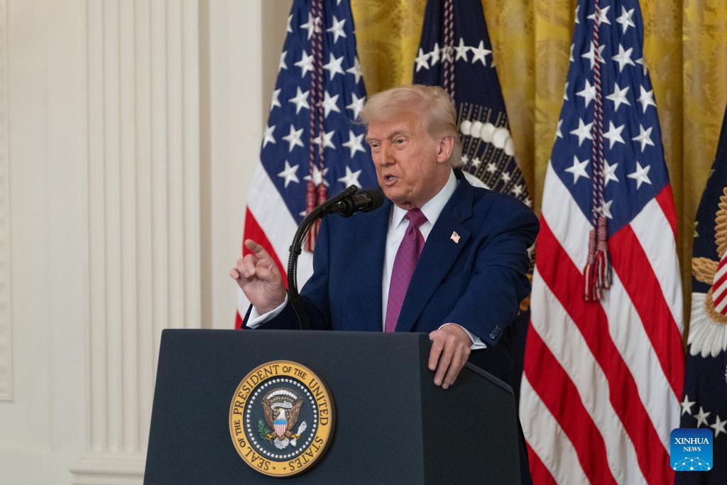 U.S. President Donald Trump speaks during a signing ceremony at the White House in Washington, D.C., the United States, on June 12, 2025. Trump moved on Thursday at a White House signing ceremony to eliminate California's nation-leading vehicle emissions standards, upending the strict rules that had become a template for states across the nation to realize their greenhouse gas ambitions. (Xinhua/Hu Yousong)