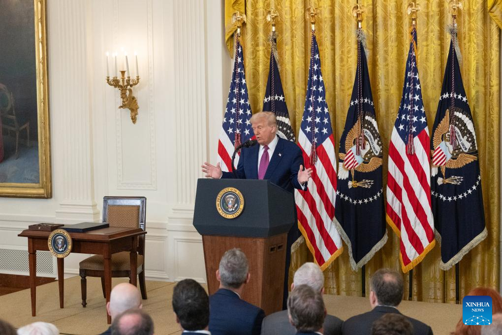 During the ceremony, Trump signed a congressional resolution that overturns a California state rule that would have phased out the sale of new gas-powered cars by 2035. The state makes up about 12 percent of the U.S. population. Its rule has also been adopted by 11 other states and Washington, D.C. The resolution was approved by Congress last month and aims to quash the country's most aggressive attempt to phase out gas-powered cars.
