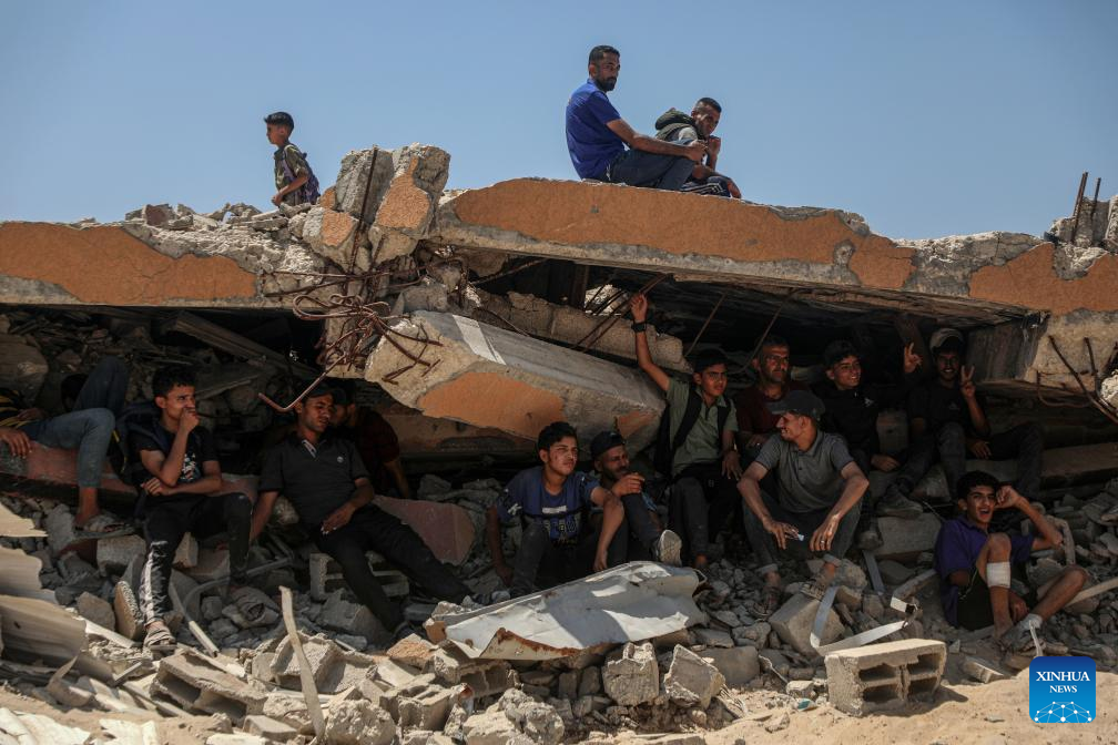 Palestinians are seen in the Sudaniya area, northern Gaza City, on June 12, 2025. The head of the United Nations agency for Palestinian refugees on Thursday condemned the current mechanisms for delivering humanitarian aid in the Gaza Strip as "degrading" and "humiliating," warning that the deteriorating conditions are worsening hunger and putting civilian lives at risk. (Photo by Rizek Abdeljawad/Xinhua)
