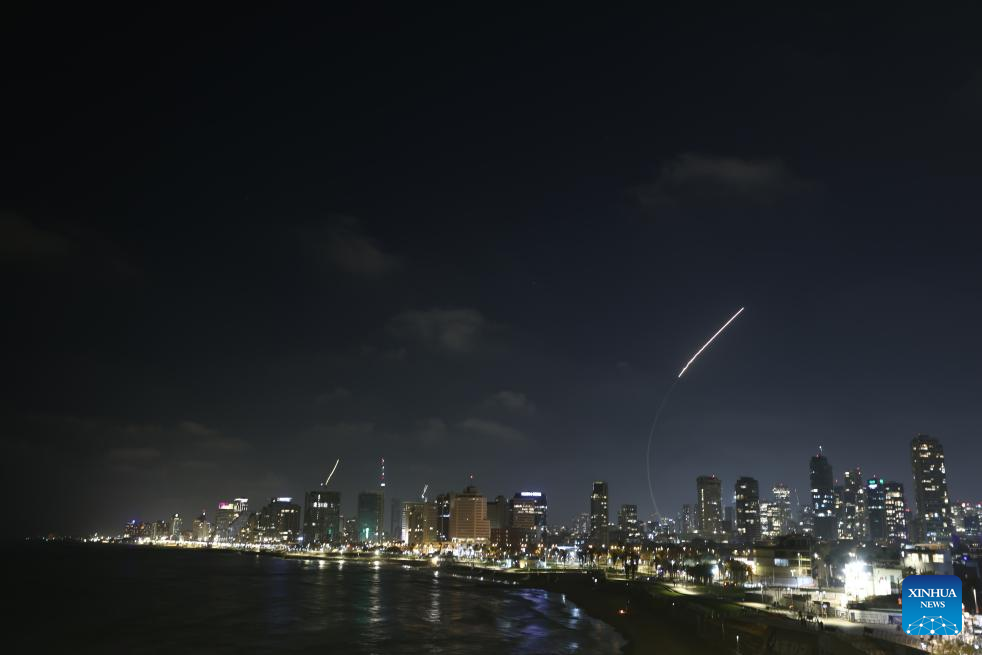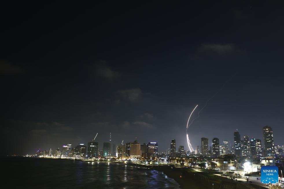 Israeli air defense system fires to intercept missiles over Tel Aviv, Israel, on June 13, 2025. Dozens of missiles were fired from Iran into Israel on Friday evening, according to statements issued by the Israel Defense Forces (IDF). (Photo by Jamal Awad/Xinhua)