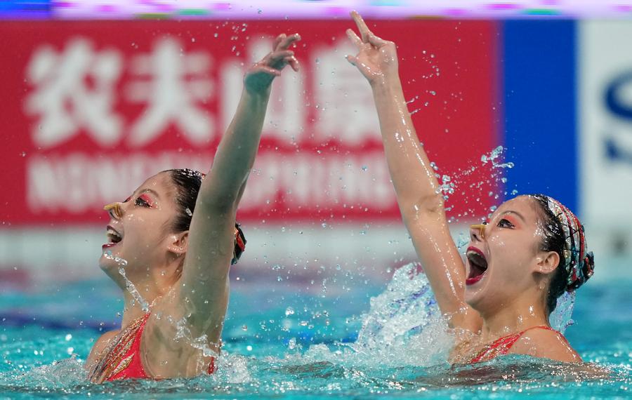 Twin sisters Lin Yanjun and Lin Yanhan won the duet free in 266.1442 points with powerful movements. Spain's duo Lilou Lluis and Iris Tio came second with 260.9325, while the bronze went to newly paired Japanese duo Uta Kobayashi and Tomoka Sato.