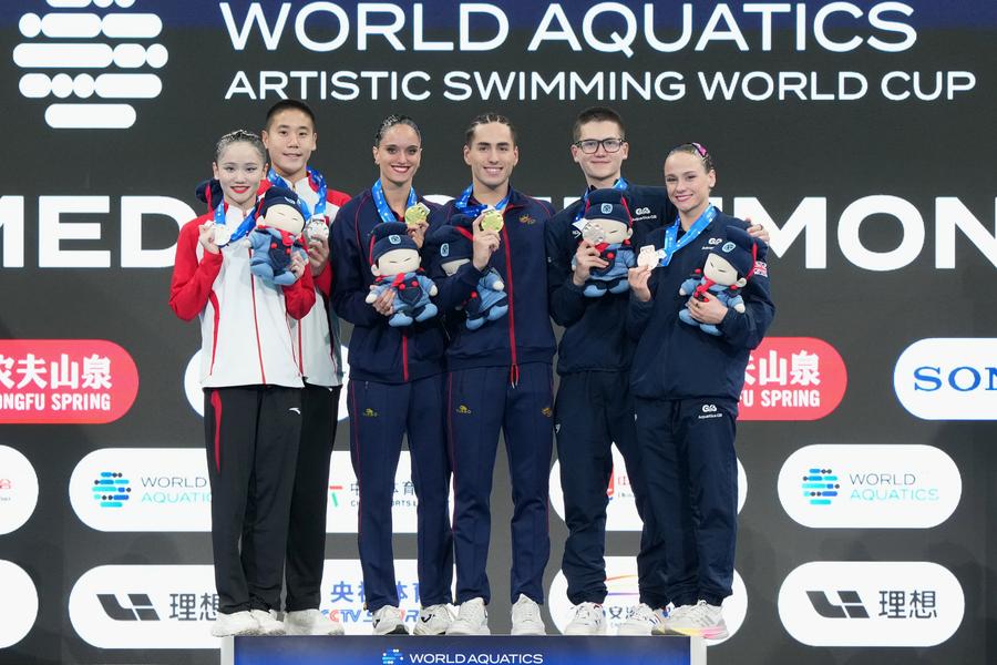 XI'AN, June 14 (Xinhua) -- China showcased commanding form at the World Aquatics Artistic Swimming World Cup Super Final here on Saturday, sweeping gold in the men's solo free, women's duet free and team free events. Spain prevented a complete Chinese triumph by claiming victory in the mixed duet technical - the sole discipline to elude the home team's grasp.