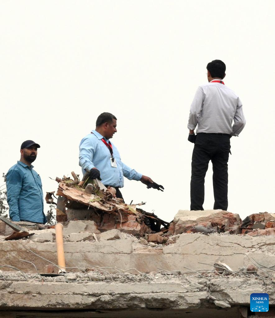 Forensic Science Laboratory (FSL) team collects evidence from the Air India flight AI 171 crash site in Ahmedabad, in India's western state of Gujarat, June 13, 2025. (IANS/Handout via Xinhua)