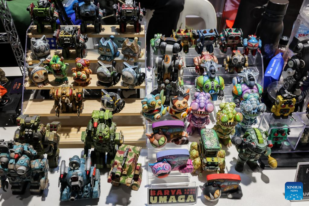 Art toys are displayed during the 22nd ToyCon PH 2025 in Pasay City, the Philippines, on June 13, 2025. The annual ToyCon PH (Philippine Toys, Hobbies, and Collectibles Convention) is a three-day event showcasing various action figures, art toys, trading cards, cosplay, comic books, and other collectibles for fans of all ages. (Xinhua/Rouelle Umali)