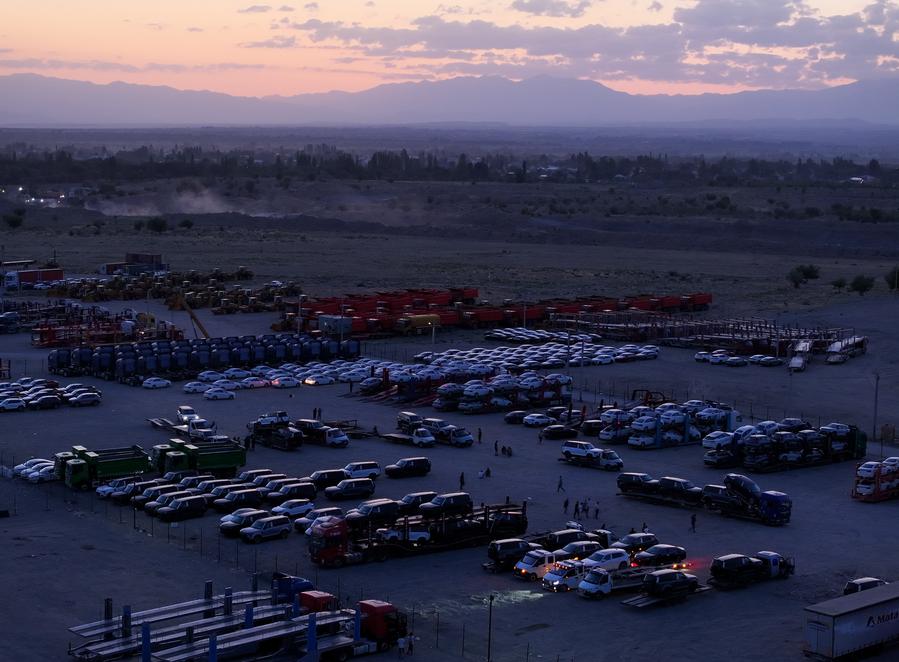 BEIJING, June 14 (Xinhua) -- As the largest land port for automobile exports in China, Horgos Port has implemented a 24-hour freight clearance system, working 7 days a week, to enhance trade logistics. According to statistics from Horgos Customs, the port had exported about 421,000 vehicles in 2024, reaching a new record high.