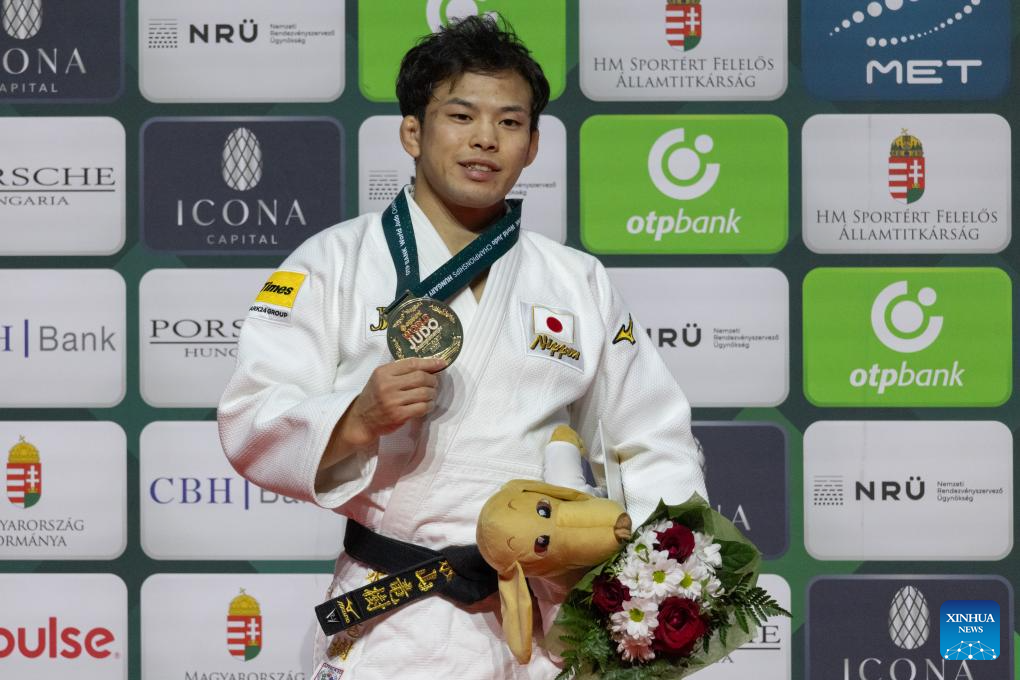 Nagayama Ryuju of Japan poses during the awarding ceremony after the Men's -60 kg final of the IJF Judo World Championships 2025 in Budapest, Hungary, June 13, 2025. (Photo by Attila Volgyi/Xinhua)