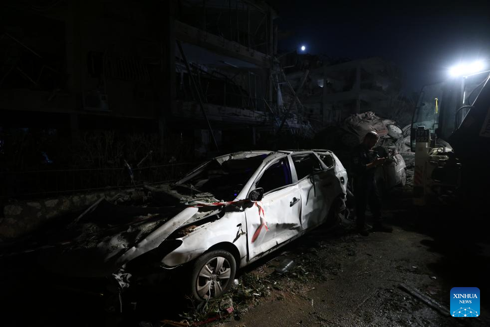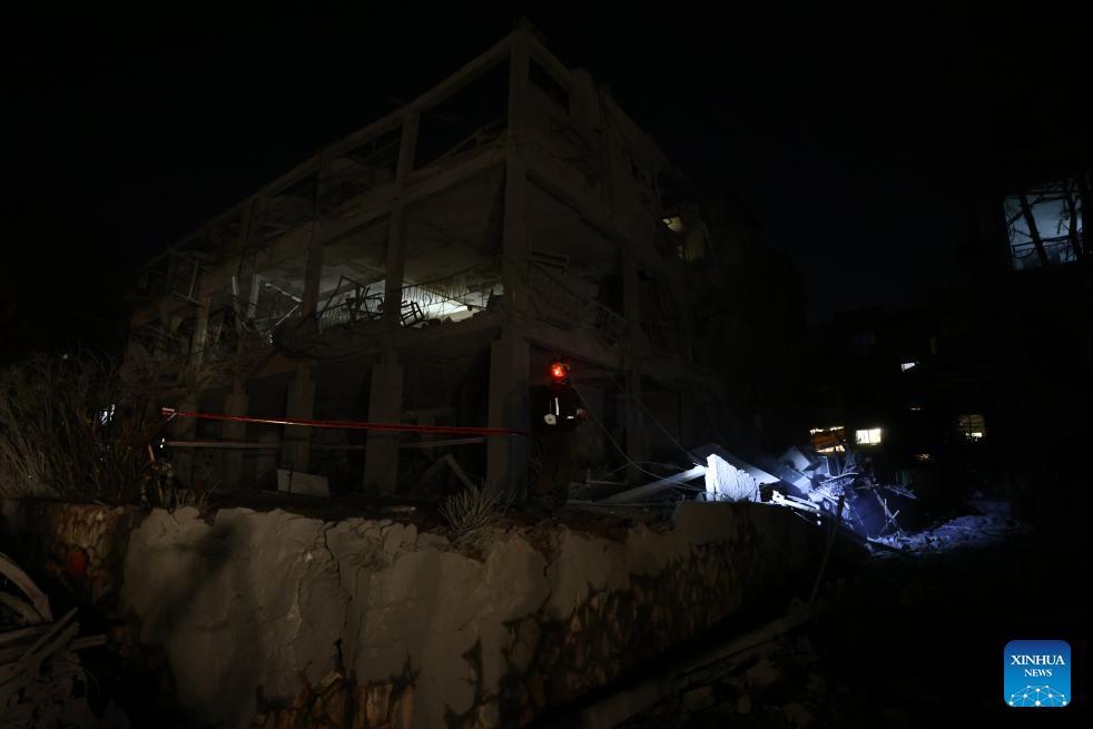 Israeli first responders arrive at a site hit by a missile fired from Iran in central Israel, on June 13, 2025. Nearly 100 missiles were launched from Iran toward central and northern Israel in two massive barrages, causing significant damage and injuring 41 people, according to the Israeli military and the national emergency service, Magen David Adom (MDA). (Photo by Jamal Awad/Xinhua)