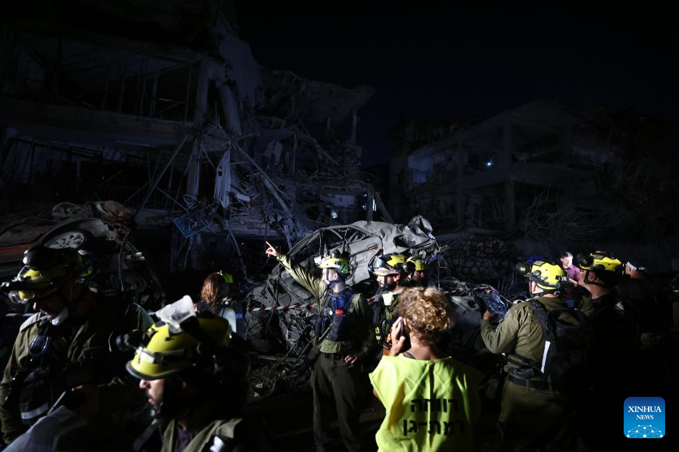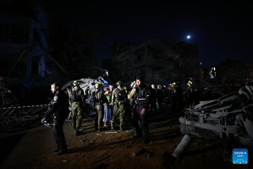 JERUSALEM, June 13 (Xinhua) -- Nearly 100 missiles were launched from Iran toward central and northern Israel in two massive barrages, causing significant damage and injuring 41 people, according to the Israeli military and the national emergency service, Magen David Adom (MDA).