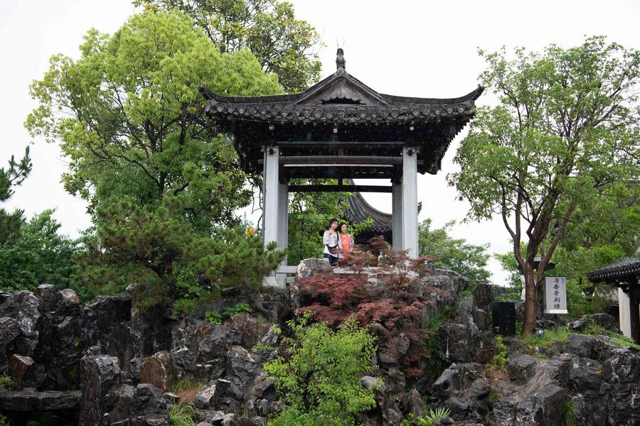 Tourists visit Chunhua Garden in Frankfurt, Germany, on May 11, 2025. (Xinhua/Zhang Fan)