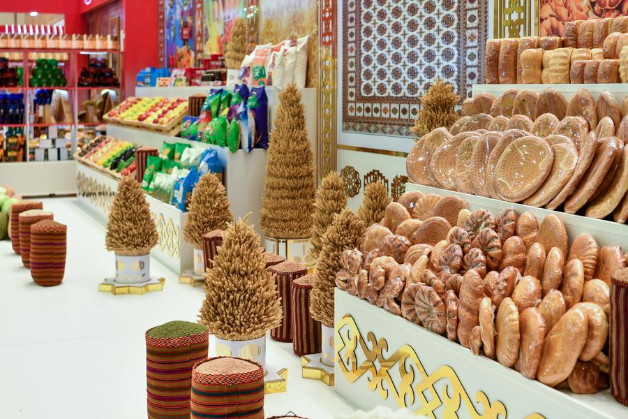 This photo taken on Nov. 28, 2023 shows naan bread at an agricultural exhibition in Ashgabat, the capital of Turkmenistan. (Xinhua/Cao Yang)