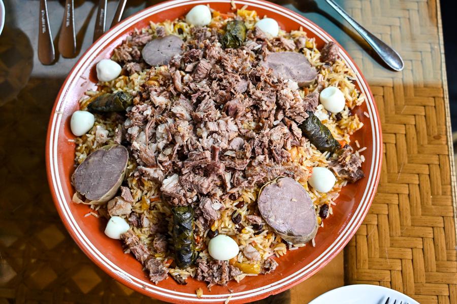 This photo taken on June 14, 2025 shows boortsog, a type of fluffy fried cookie, in Astana, the capital of Kazakhstan. (Xinhua/Bi Xiaoyang)People prepare traditional food to celebrate the Nowruz festival in Bishkek, the capital of Kyrgyzstan, March 20, 2023. (Photo by Roman/Xinhua)A chef cooks pilaf at the Central Asian Pilaf Centre in Tashkent, the capital of Uzbekistan, Sept. 14, 2023. (Xinhua/Wu Huiwo)A staff member transports pomegranate juice in Tashkent, the capital of Uzbekistan, Sept. 14, 2023. (Xinhua/Li Muzi)This photo taken on July 3, 2024 shows vegetables and spice sold at a bazaar in Dushanbe, the capital of Tajikistan. (Xinhua/Yan Yan)A vendor sells nuts and dried fruits in Dushanbe, the capital of Tajikistan, June 10, 2019. (Xinhua/Shadati)People display traditional food in Dushanbe, the capital of Tajikistan, April 13, 2019. (Xinhua/Bai Xueqi)A vendor prepares pilaf in Almaty, Kazakhstan, on May 1, 2025. (Xinhua/Li Renzi)Cooks make naan bread in Tashkent, the capital of Uzbekistan, Aug. 27, 2024. (Xinhua/Cao Yang)This photo taken on June 14, 2025 shows a meat platter in Astana, the capital of Kazakhstan. (Xinhua/Lai Xiangdong)This photo taken on Aug. 27, 2024 shows pilaf in Tashkent, the capital of Uzbekistan. (Xinhua/Cao Yang)■