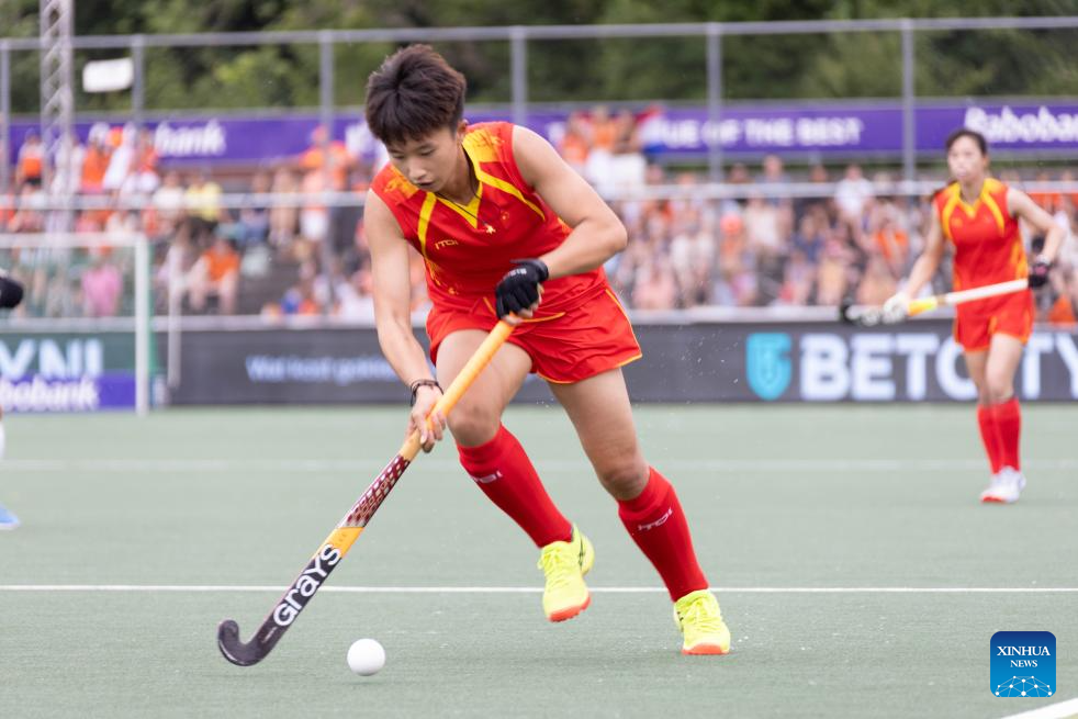 Liu Chencheng of China competes during the FIH Hockey Pro League women's match between China and the Netherlands in Amstelveen, the Netherlands, June 14, 2025. (Photo by Sylvia Lederer/Xinhua)