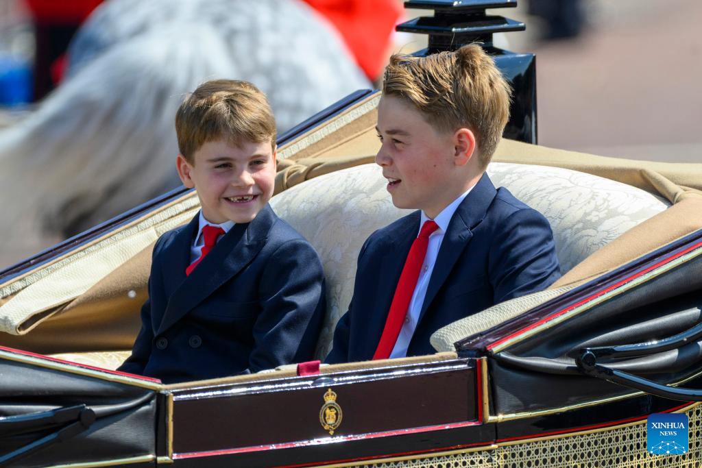 Prince George and Prince Louis attend the Trooping the Colour parade to honour Britain's King Charles III on his official birthday in London, Britain, on June 14, 2025. (Photo by Ray Tang/Xinhua)