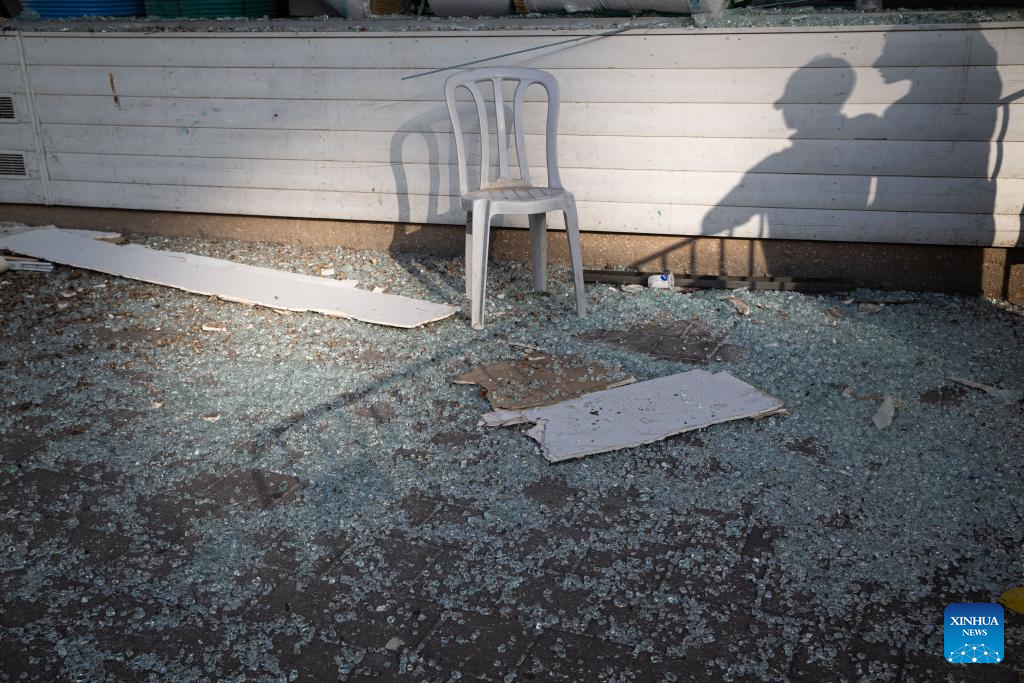 This photo taken on June 15, 2025 shows a barber shop damaged by a missile fired from Iran in Rehovot, central Israel. According to Israel's state-owned Kan TV News, the death toll from Iran's strikes since Friday has reached 14. (Xinhua/Chen Junqing)