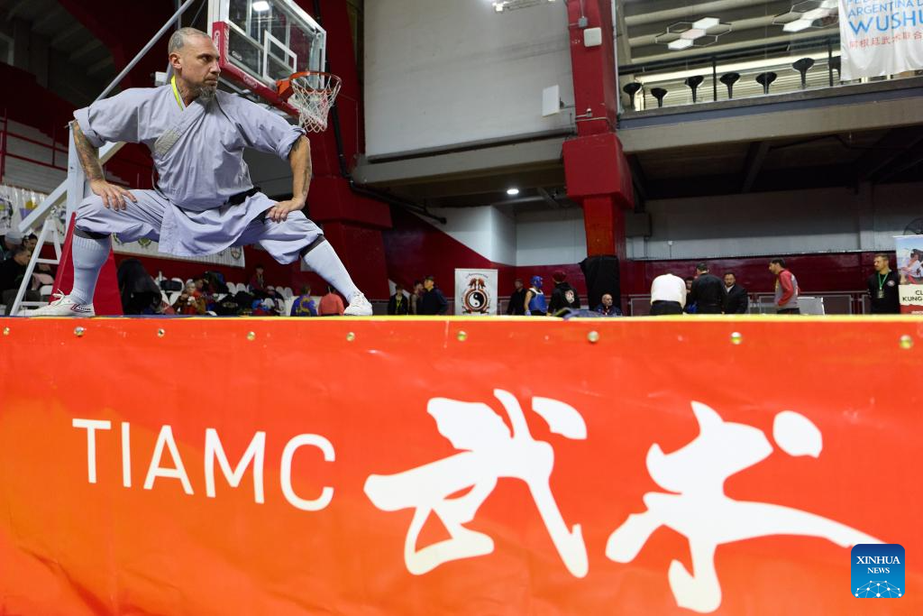 Athletes compete during the National Wushu Championships of Argentina in Buenos Aires, Argentina, on June 15, 2025. (Xinhua/Meng Dingbo)