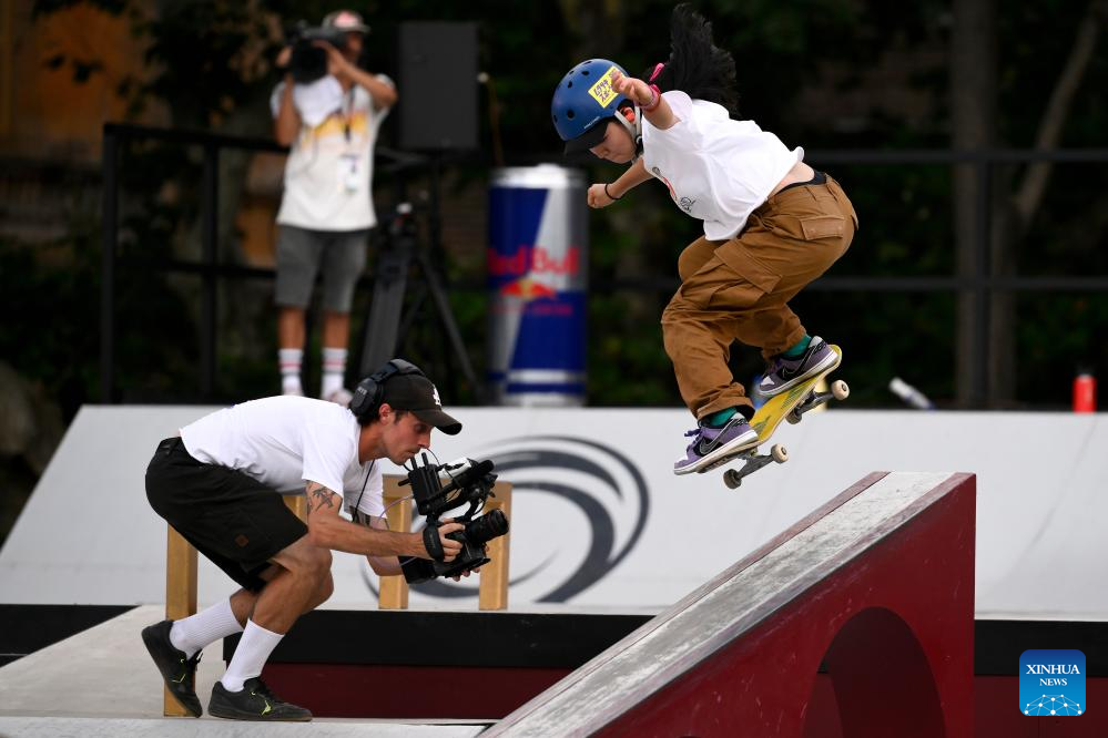 Matsumoto Ibuki competes during the women's final match at the street skateboarding World Cup at the Colle Oppio Street Skatepark in Rome, Italy, June 15, 2025. (Photo by Andrea Staccioli/Xinhua)