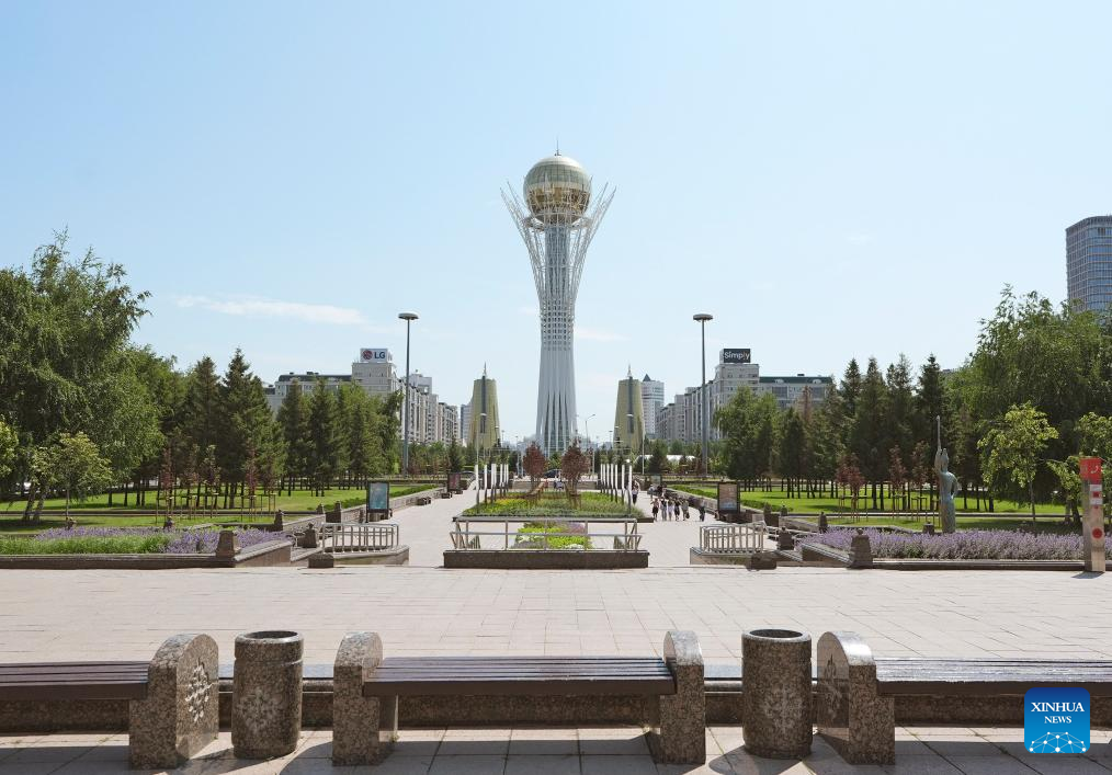 This photo taken on June 14, 2025 shows the Baiterek Tower in Astana, Kazakhstan. (Xinhua/Lai Xiangdong)