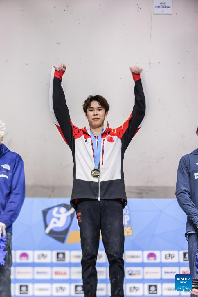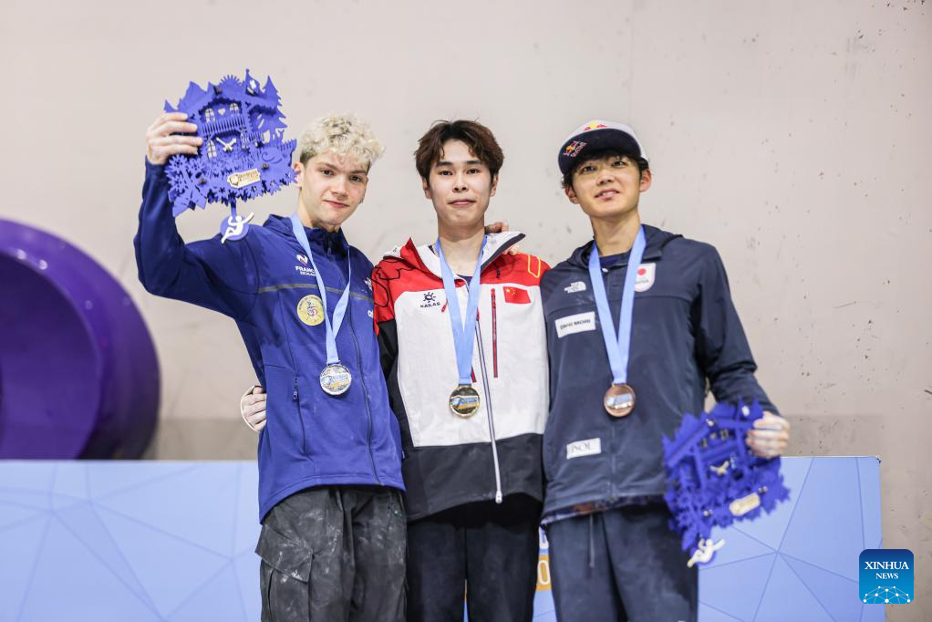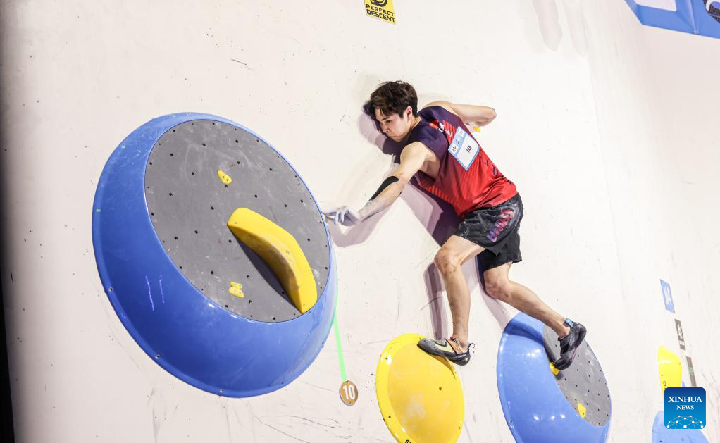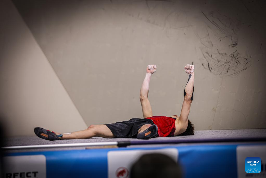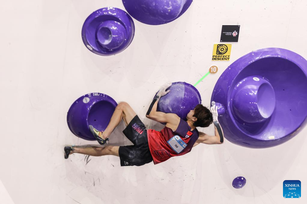 BERN, Switzerland, June 15 (Xinhua) -- Pan Yufei became the first Chinese climber to win the men's Boulder event at the International Federation of Sport Climbing World Cup, edging out France's Mejdi Schalck by 0.1 points on Sunday.