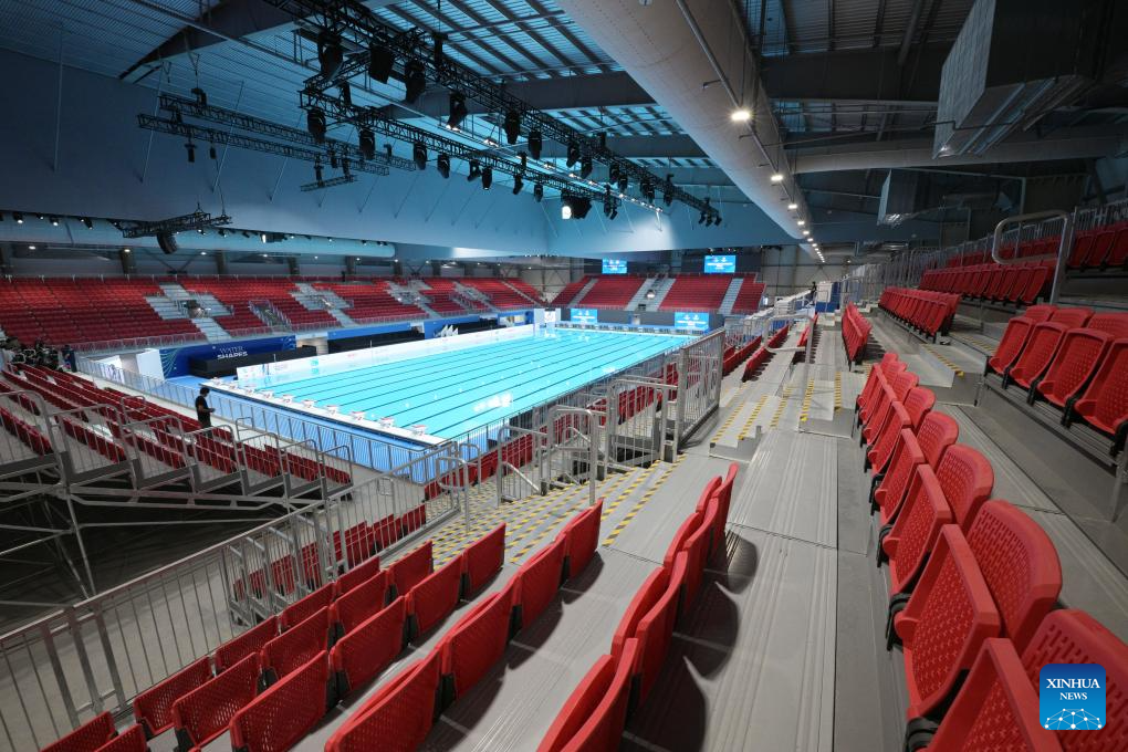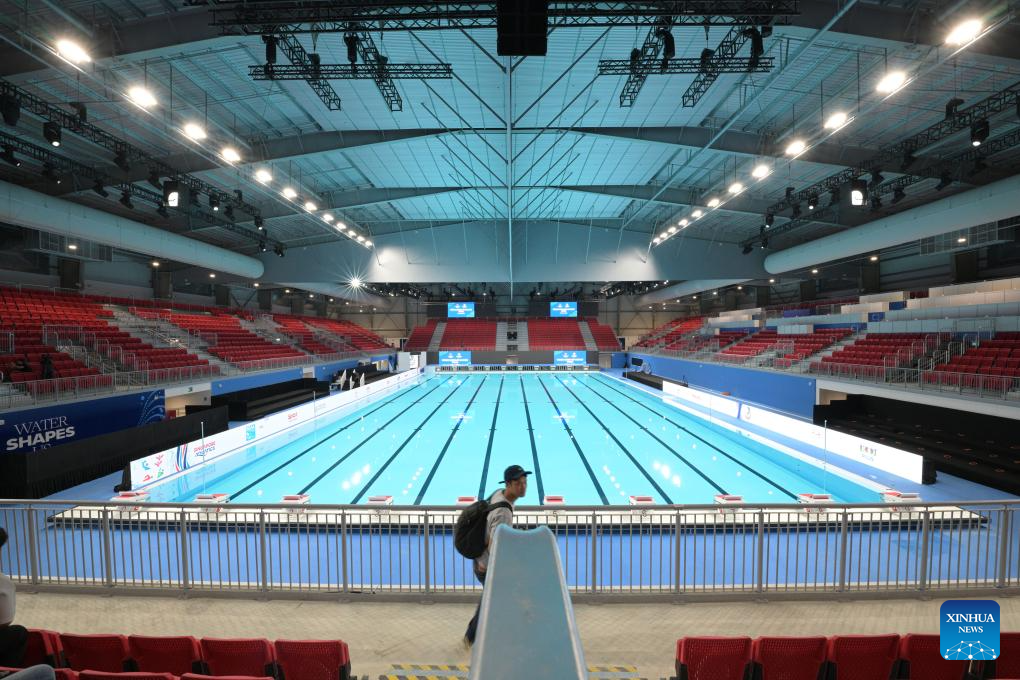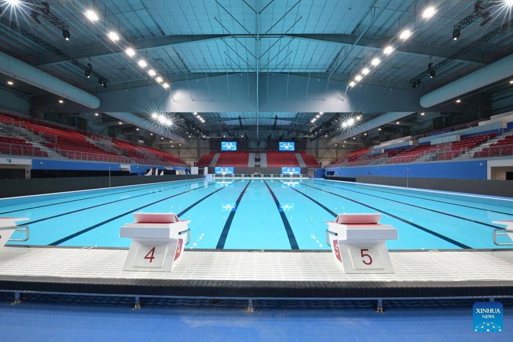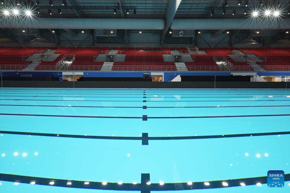 Photo taken on June 16, 2025 shows the interior view of the newly-built World Aquatics Championships Arena during a media tour, ahead of the World Aquatics Championships to be held in Singapore Sports Hub. (Photo by Then Chih Wey/Xinhua)