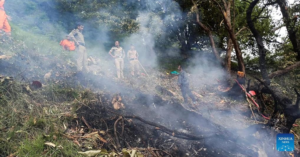 Seven people, including two children, the pilot and four male passengers, were dead in the private chopper crash in India's northern hilly state of Uttarakhand early on Sunday, a senior state government official said. (IANS/Handout via Xinhua)