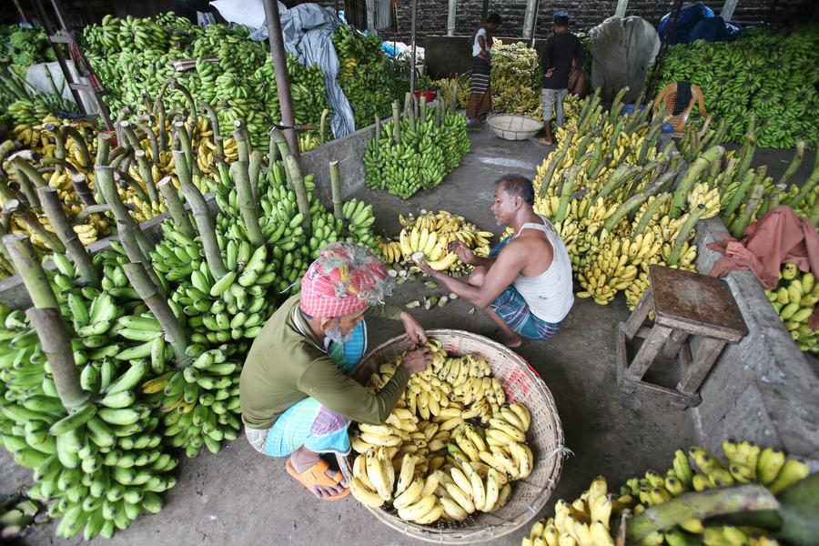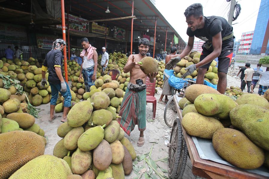 DHAKA, June 17 (Xinhua) -- Farmers sort fruits at a bustling wholesale market in Dhaka, the capital of Bangladesh, as the fruit harvest season has recently begun.